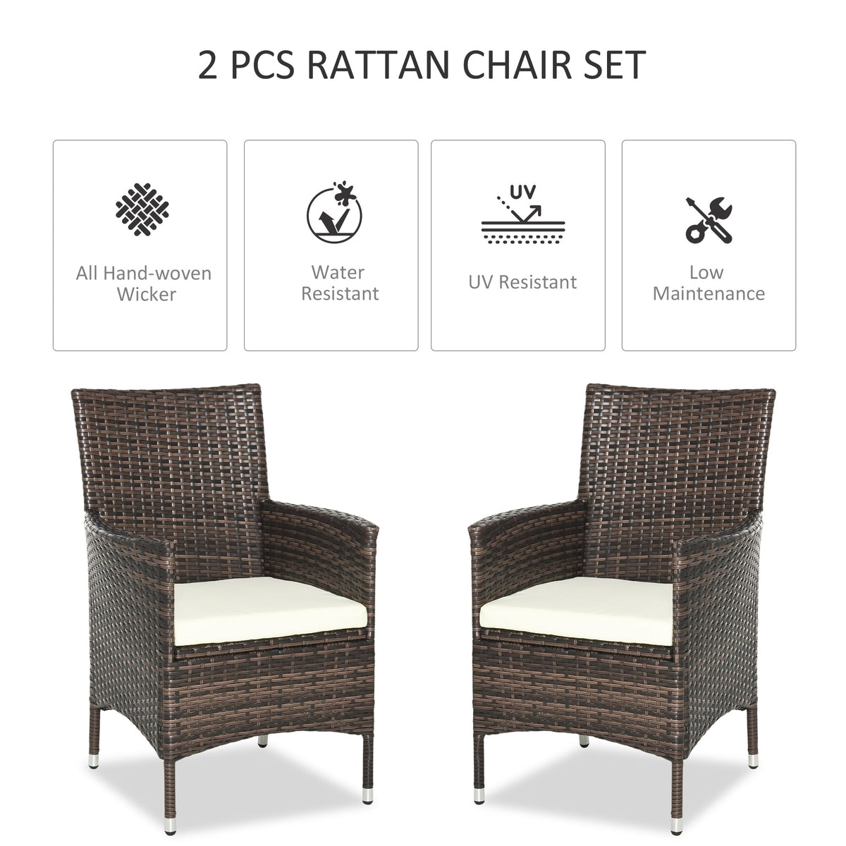 Outsunny 2 PC Outdoor Rattan Armchair Dining Chair Garden Patio Furniture w/ Armrests Cushions Mixed Brown