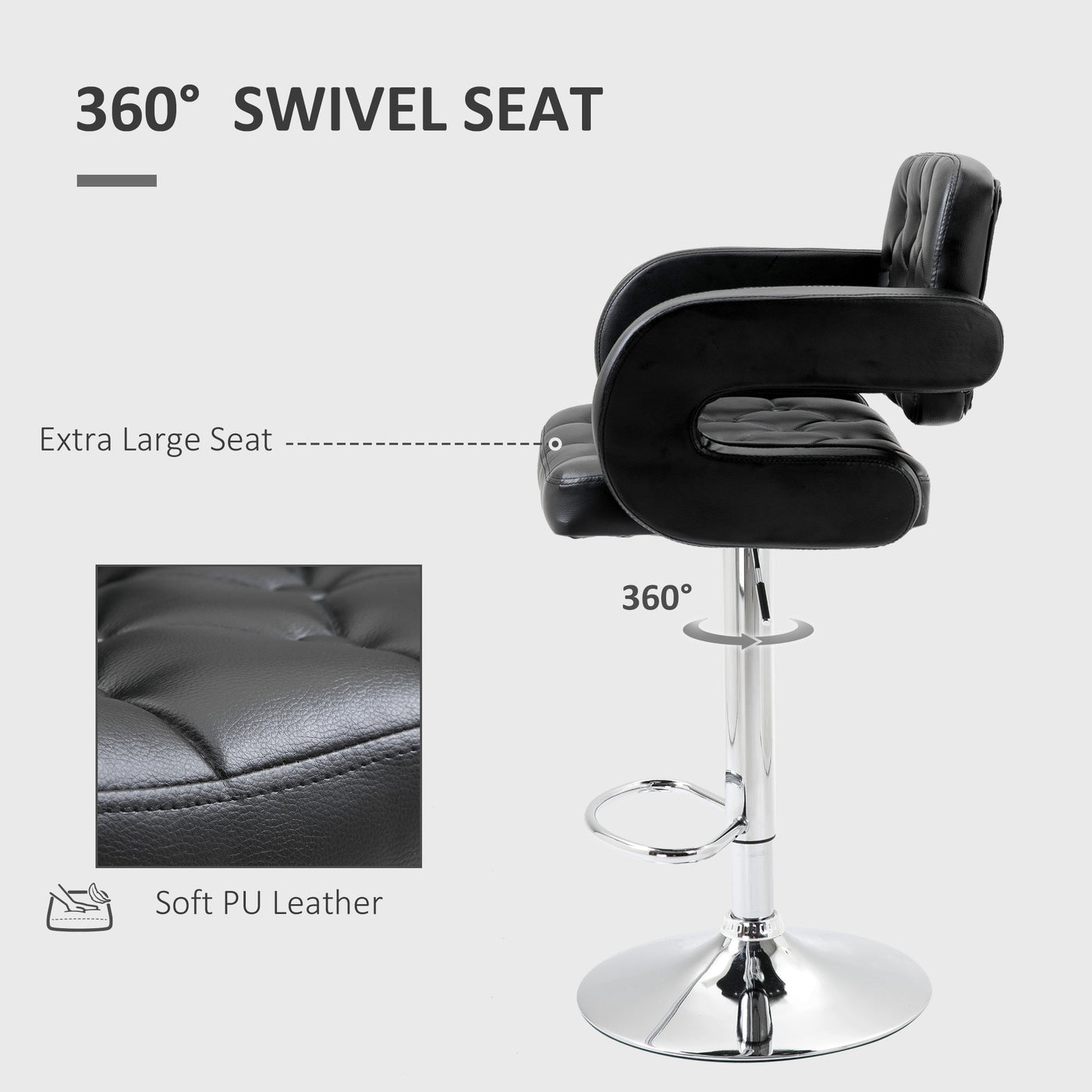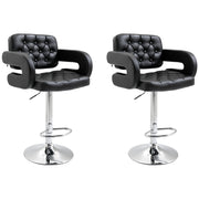 Set of 2 PU Leather Upholstered Swivel Bar Stool, Height Adjustable Barstool with Back, Armrest, Footrest for Kitchen - Black