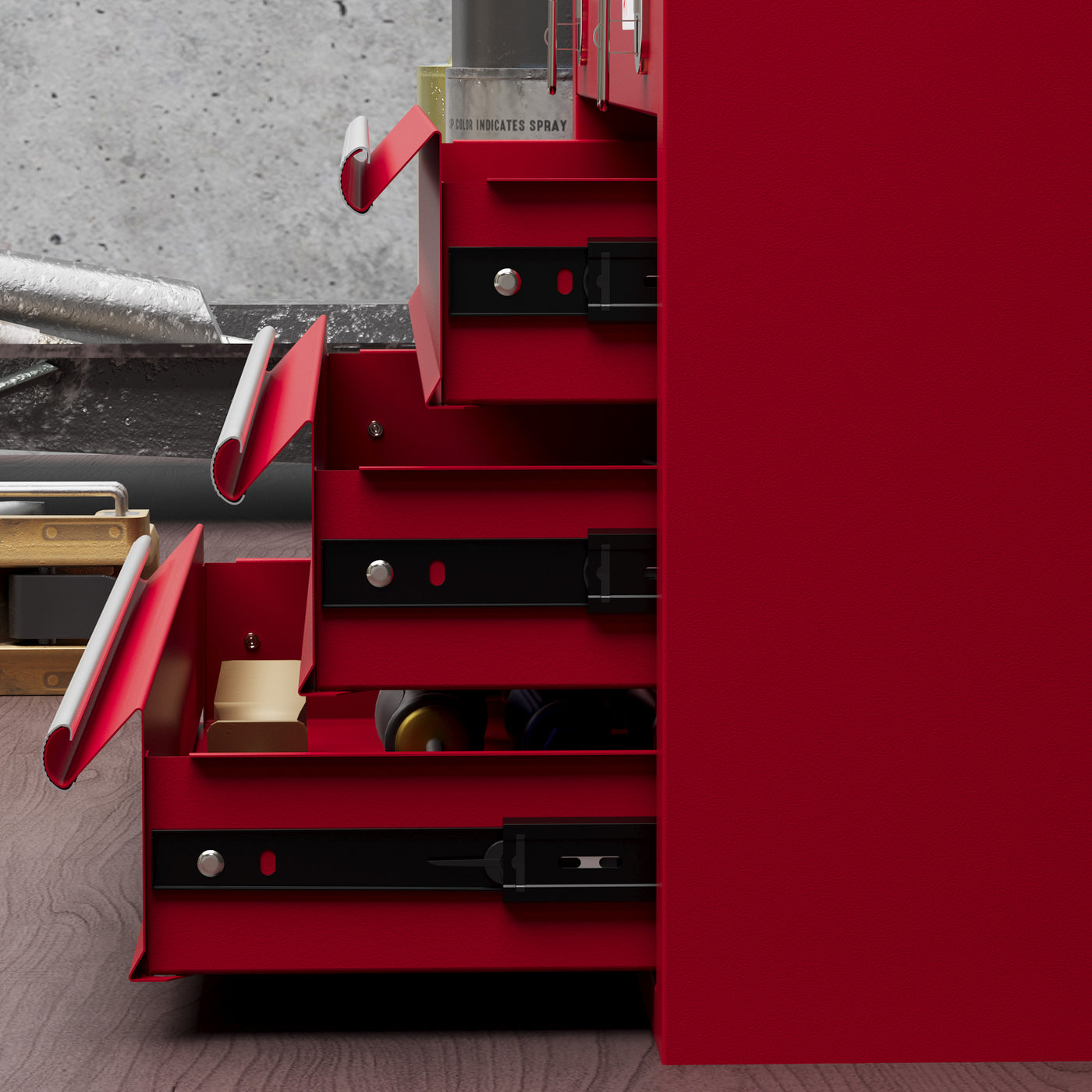 DURHAND Lockable Metal Tool Box, 3 Drawer Tool Chest with Latches, Handle, Ball Bearing Runners, Red - Red