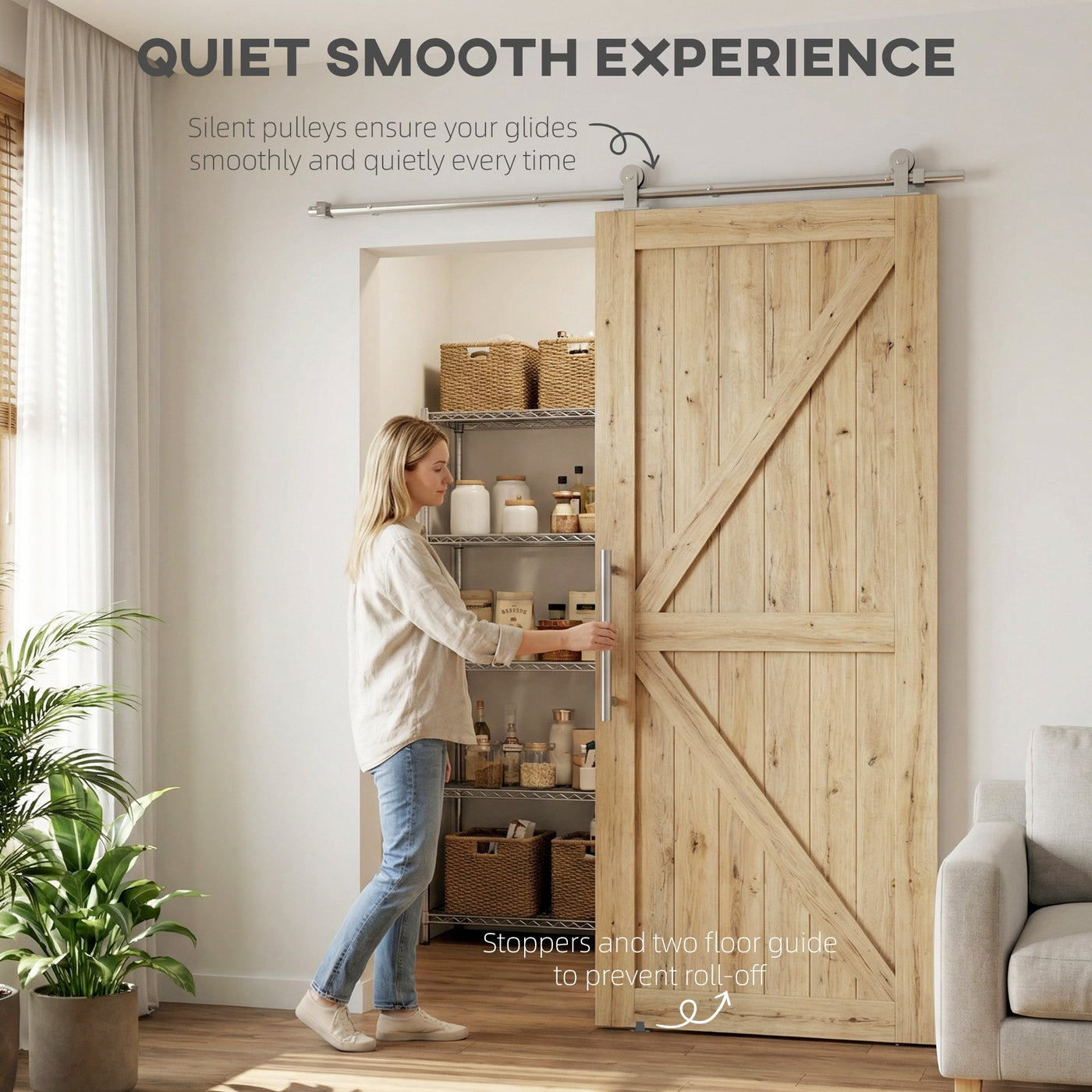 HOMCOM Sliding Door Hardware Kit Heavy Duty 304 Stainless Steel 152 cm Wide Door Silver Tone - Silver Tone