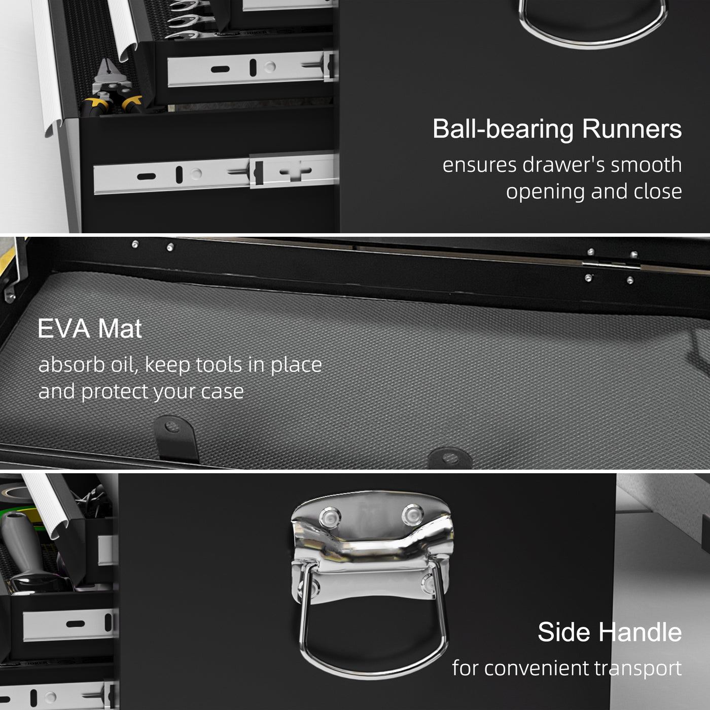 HOMCOM Steel Six Drawer Tool Storage Carry Chest, with Lock and Keys - Black - Black