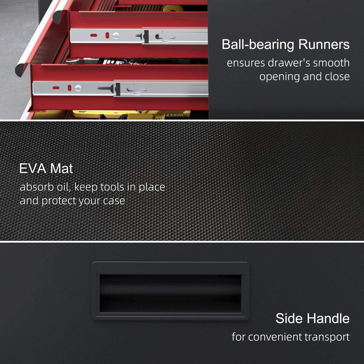 HOMCOM Two-Part Tool Storage Chest on Wheels - Black/Red - Red