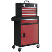 HOMCOM Two-Part Tool Storage Chest on Wheels - Black/Red