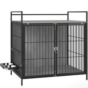 PawHut Dog Crate Furniture with Rotating Bowl Holder, 2 Bowls, 2 Doors, for Medium Dogs, 80 x 56 x 76.5 cm, Grey - Grey