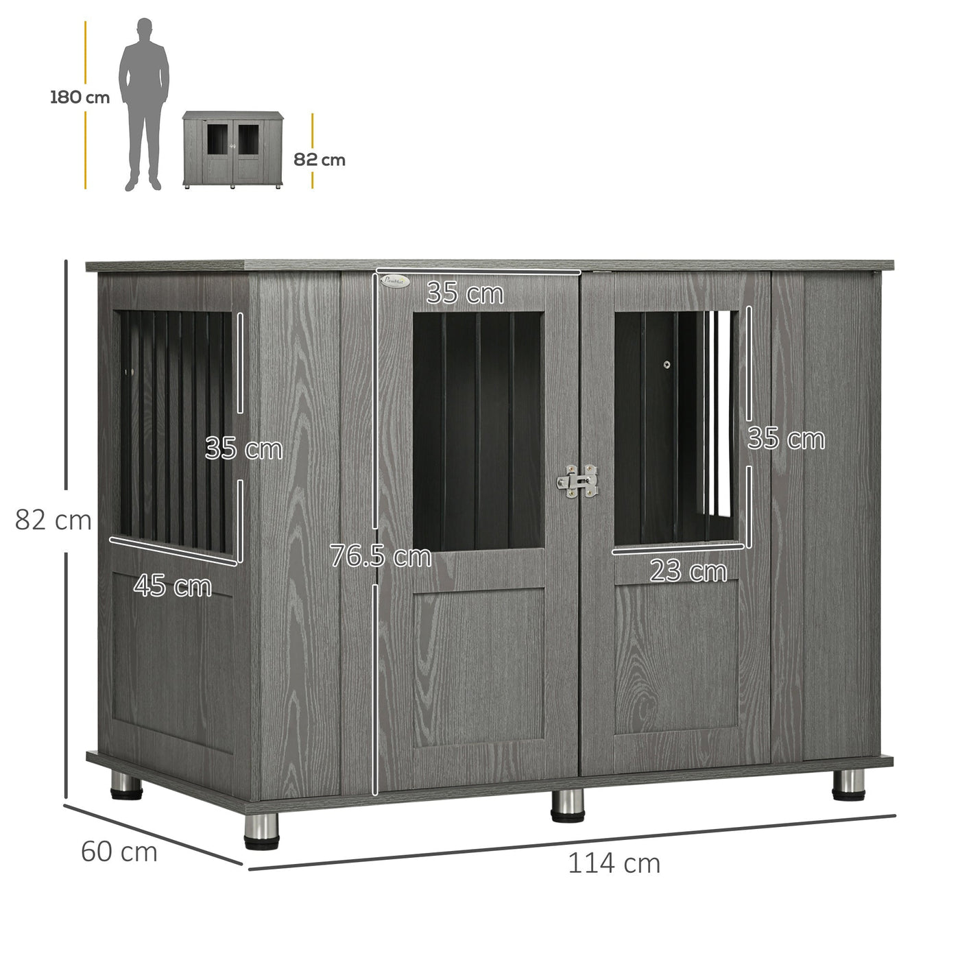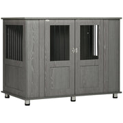 PawHut Dog Crate Table for Medium and Large Dogs with Magnetic Door for Indoor Use, 114 x 60 x 82 cm, Grey - Grey