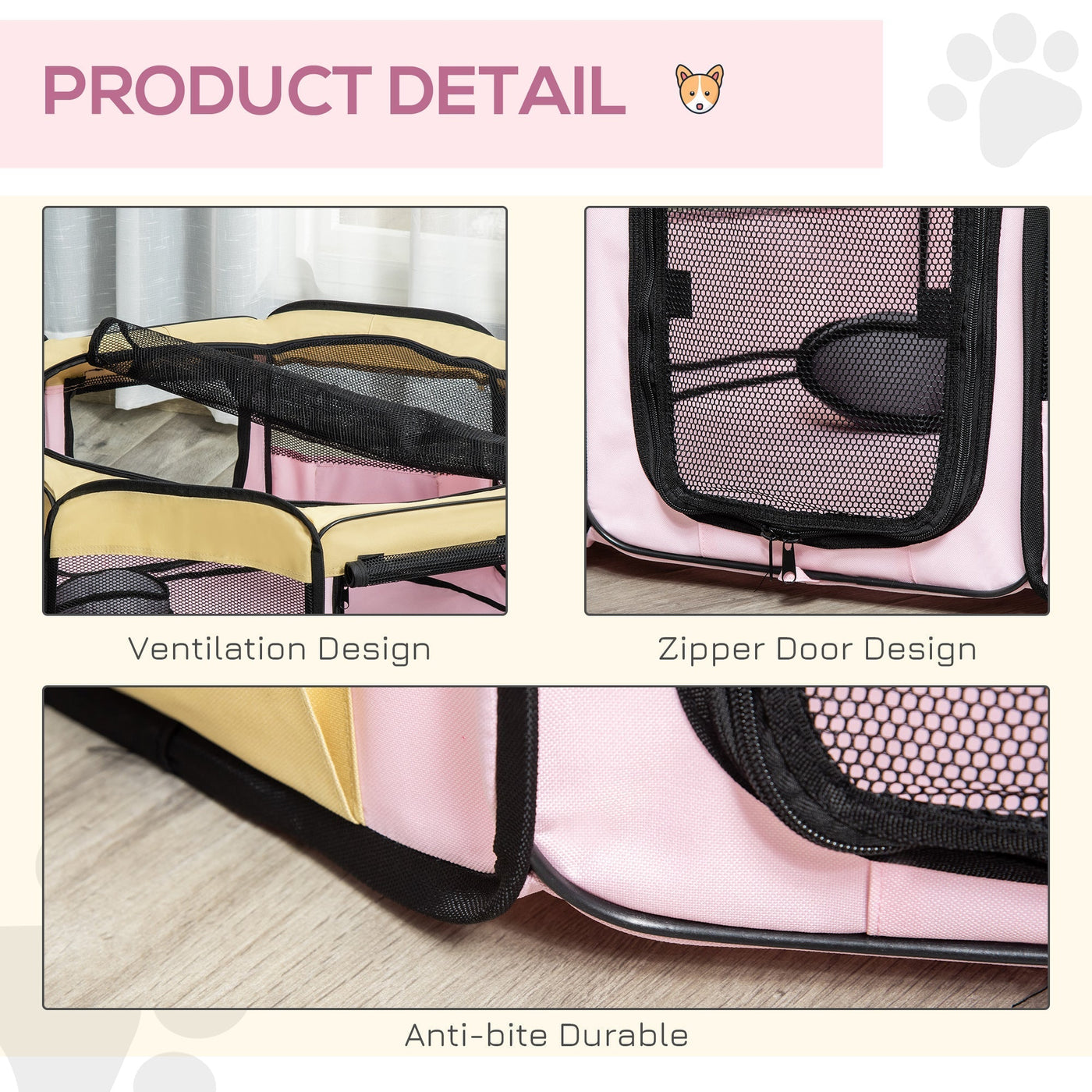 PawHut Fabric Pet Whelping Box Dog Cat Puppy Playpen Rabbit Guinea Pig Play Pen in Pink With Carry Bag Small Dia 90 x 41Hcm - Pink, beige