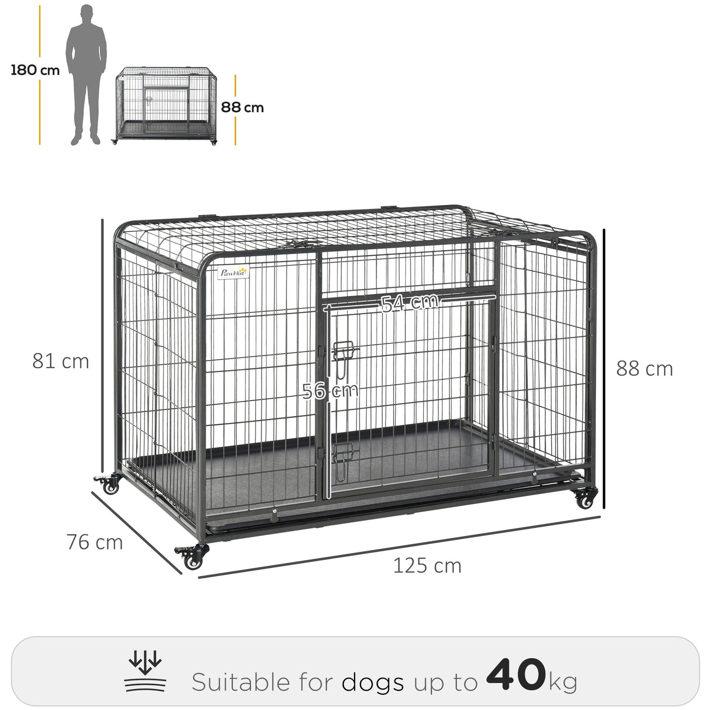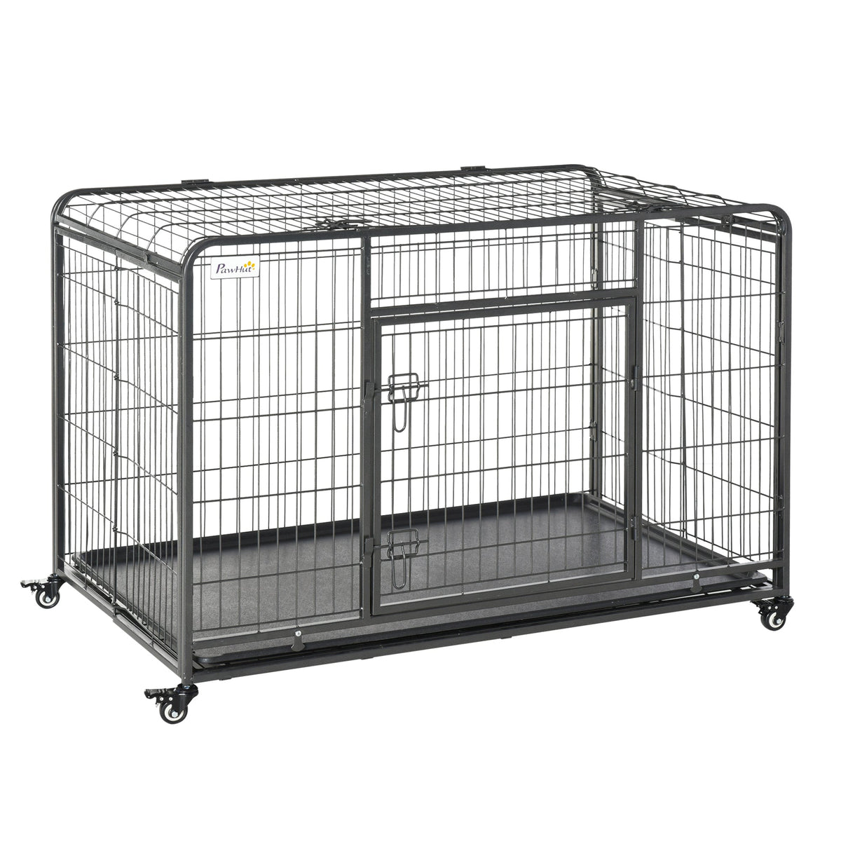 PawHut Metal Dog Cage Kennel Locking Door & Wheels Removable Tray Openable Top For Extra Large Pets 125 x 76 x 81 cm