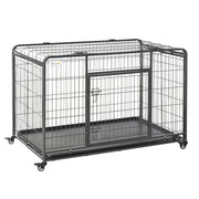 PawHut Metal Dog Cage Kennel Locking Door & Wheels Removable Tray Openable Top For Extra Large Pets 125 x 76 x 81 cm - Dark grey