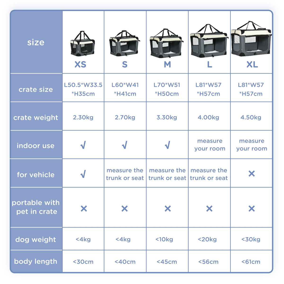 PawHut 51cm Foldable Pet Carrier, with Cushion, for Mini Dogs and Cats - Grey - Grey
