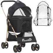 PawHut Detachable Pet Stroller with Rain Cover, 3 In 1 Cat Dog Pushchair, Foldable Carrying Bag w/ Universal Wheels, Brake, Canopy, Basket, Storage Bag for Small and Tiny Dogs - Black