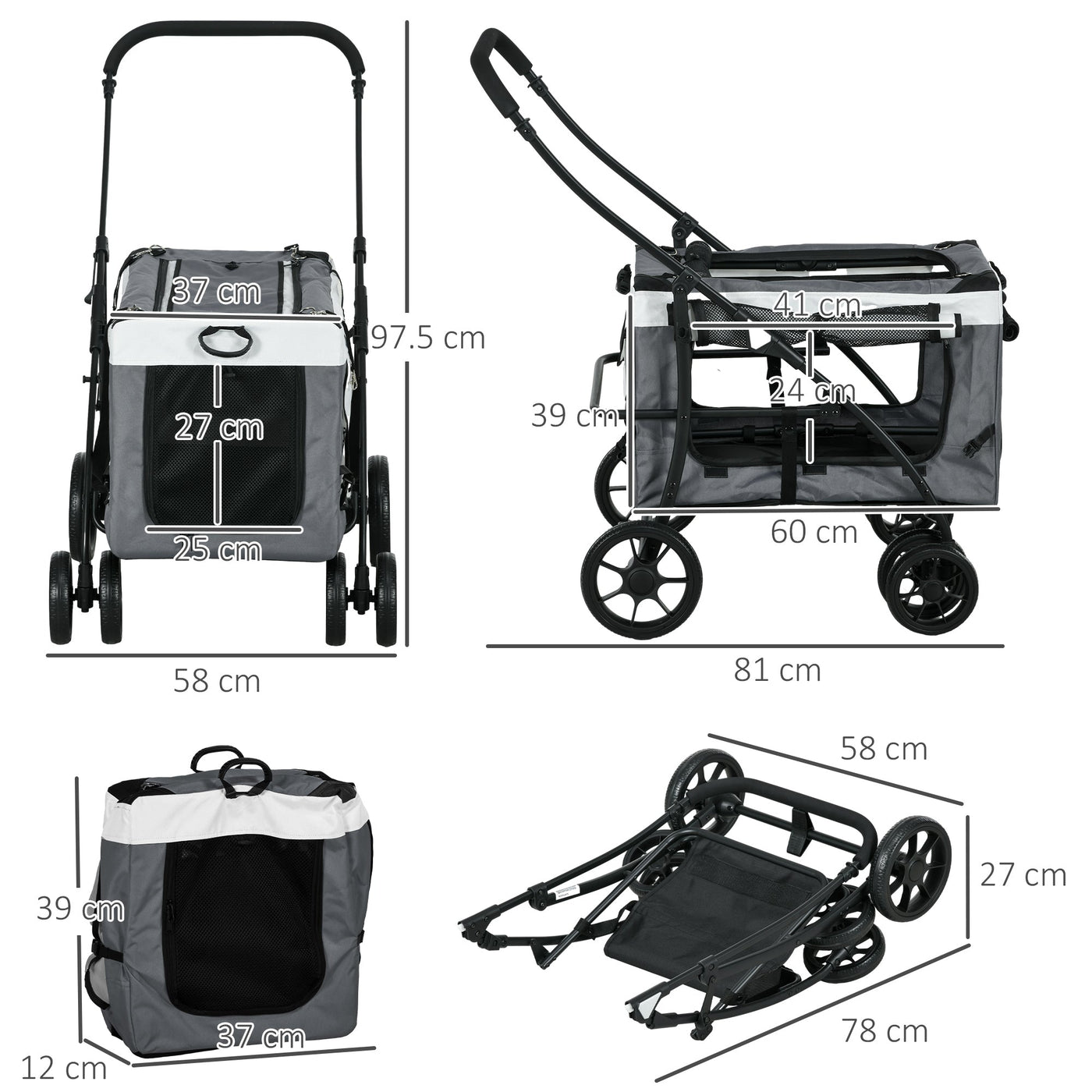 PawHut Foldable Dog Stroller, Pet Travel Crate, with Detachable Carrier, Soft Padding, for Mini, Small Dogs - Grey - Grey