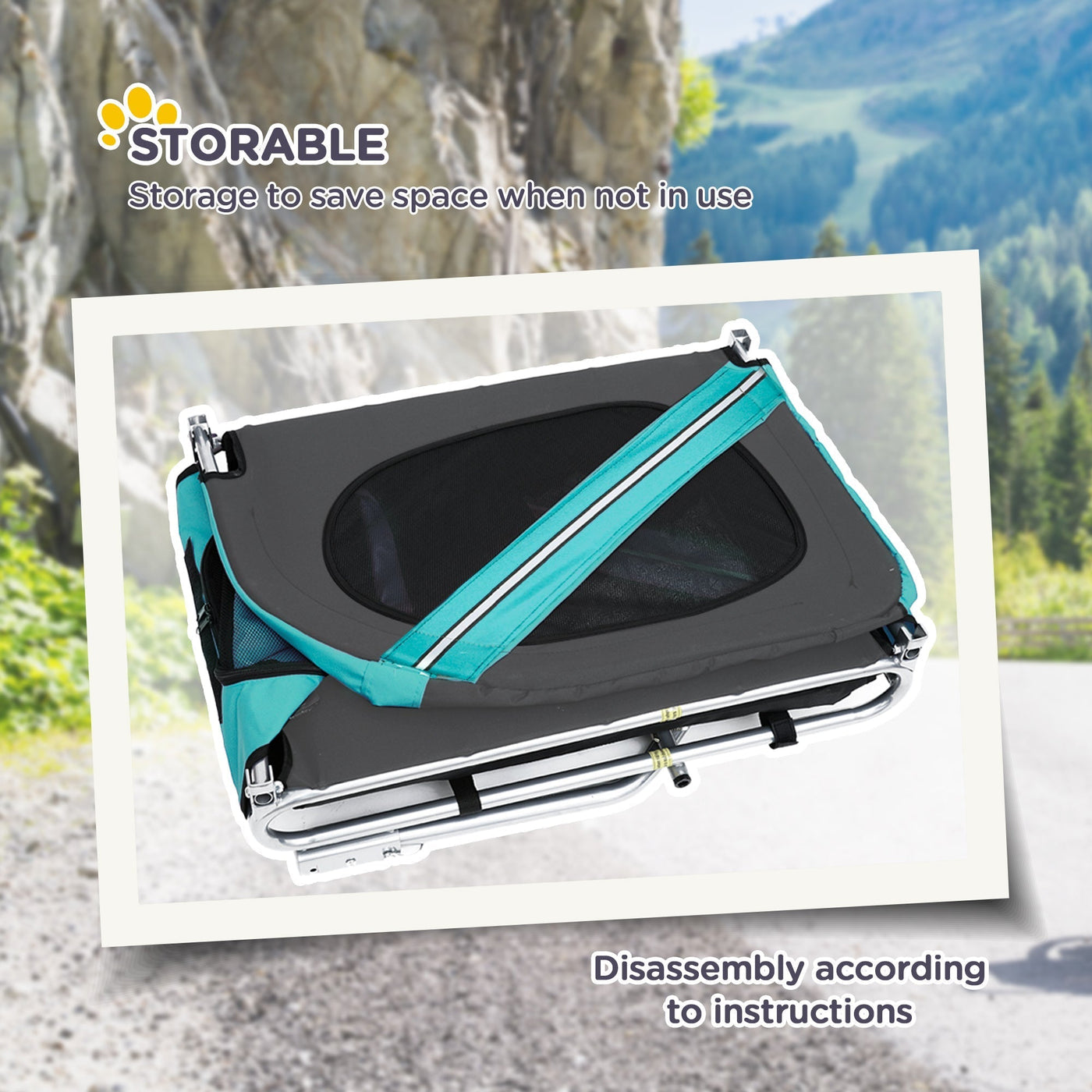 PawHut Folding Dog Bike Trailer Pet Cart Carrier for Bicycle Travel in Steel Frame with Hitch Coupler - Light Blue & Grey - Blue