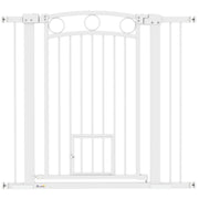 PawHut 96cm Tall Dog Gate with Cat Door, 7cm and 14cm Extensions, for Stairs, Doorways, 76-104cm Width - White