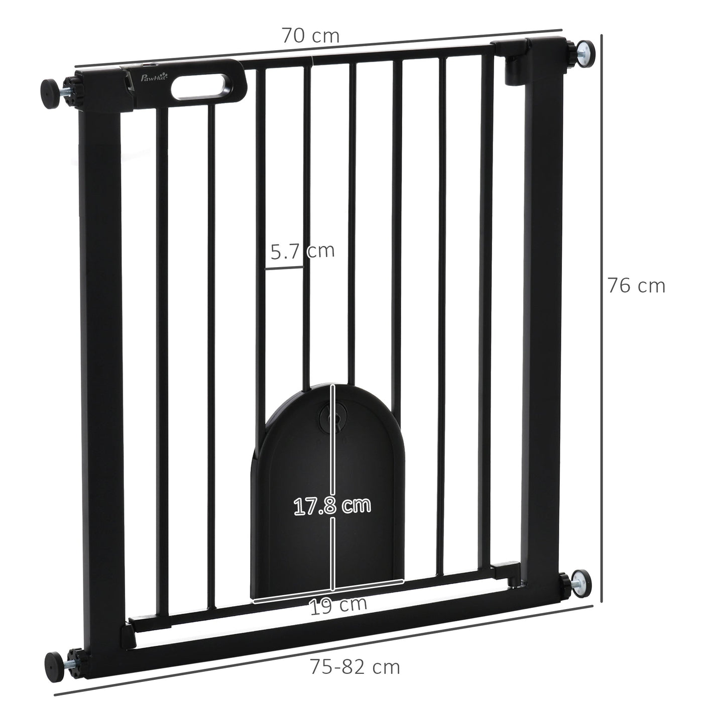 PawHut Dog Gate with Cat Flap Pet Safety Gate Barrier, Stair Pressure Fit, Auto Close, Double Locking, for Doorways, Hallways, 75-82 cm Black - Black