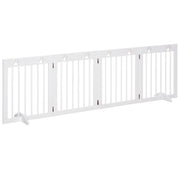 PawHut Freestanding Pet Gate 4 Panel Wooden Dog Barrier Folding Safety Fence with Support Feet up to 204cm Long 61cm Tall for Doorway Stairs White - White