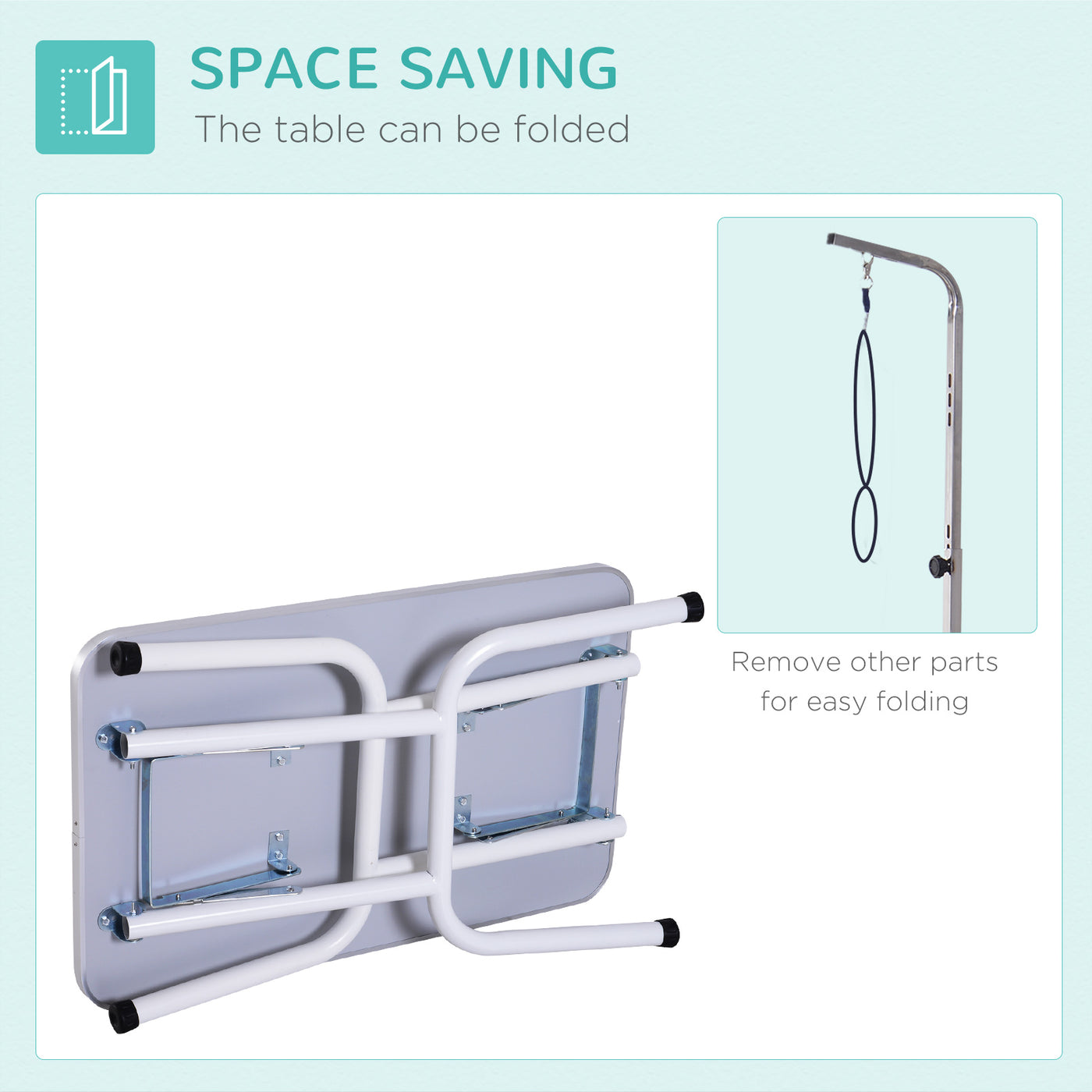 PawHut 32" Foldable Dog Grooming Table Pet Drying Beauty Table Adjustable Fixed Arm Rubber Top, Blue - Blue