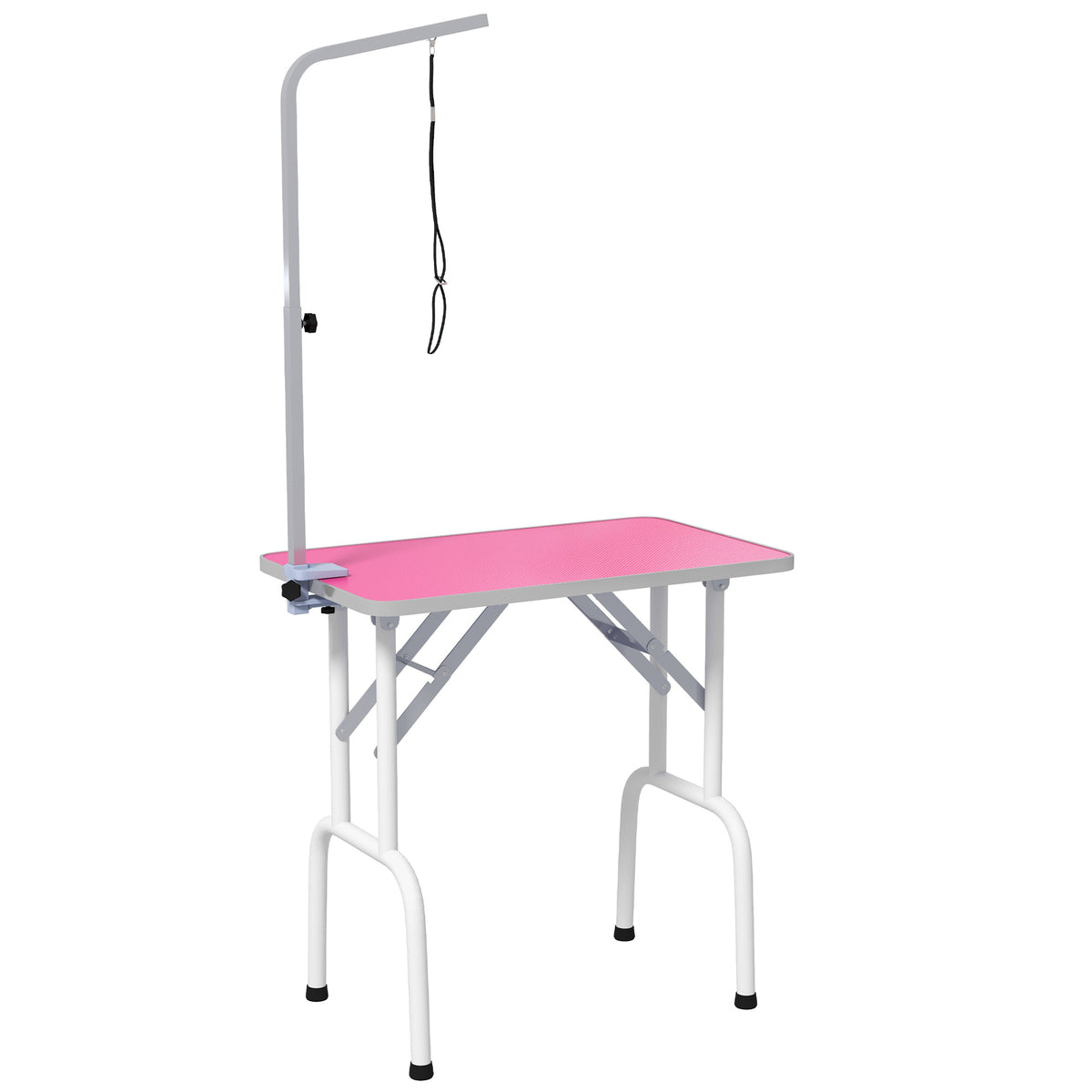 PawHut 32" Foldable Dog Grooming Table Pet Drying Beauty Table Adjustable Fixed Arm Rubber Top, Pink - Pink