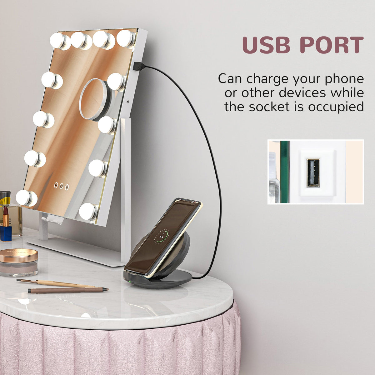 HOMCOM 12 LED bulb Tabletop Makeup Mirror, with Adjustable Settings - White