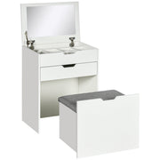 HOMCOM Dressing Table with Flip-up Mirror and Storage Stool, Vanity Table with Drawer and Hidden Compartments for Bedroom, Living Room, White - White