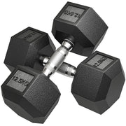 HOMCOM 2x12.5KG Rubber Hex Dumbbell Portable Hand Weights Dumbbell Home Gym