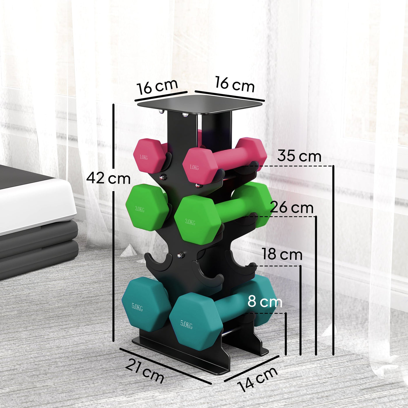SPORTNOW Hex Dumbbells Set with Dumbbell Rack, Non Slip Hand Weights for Home Gym Strength Training, 2 x 1kg, 2 x 3kg, 2 x 5kg - Pink, Light Green, Dark Green