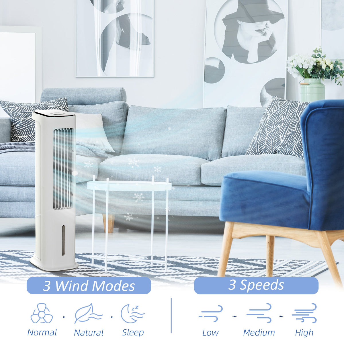 HOMCOM Evaporative Air Cooler, 5L Water Tank Oscillating Ice Cooling Fan with 3 Modes, 3 Speeds, Remote Control, Timer, and Oscillation, White - White