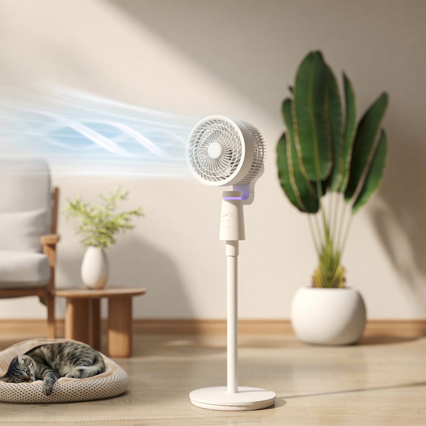 HOMCOM Pedestal Air Circulation Fan with Oscillating, Light Off, White - White
