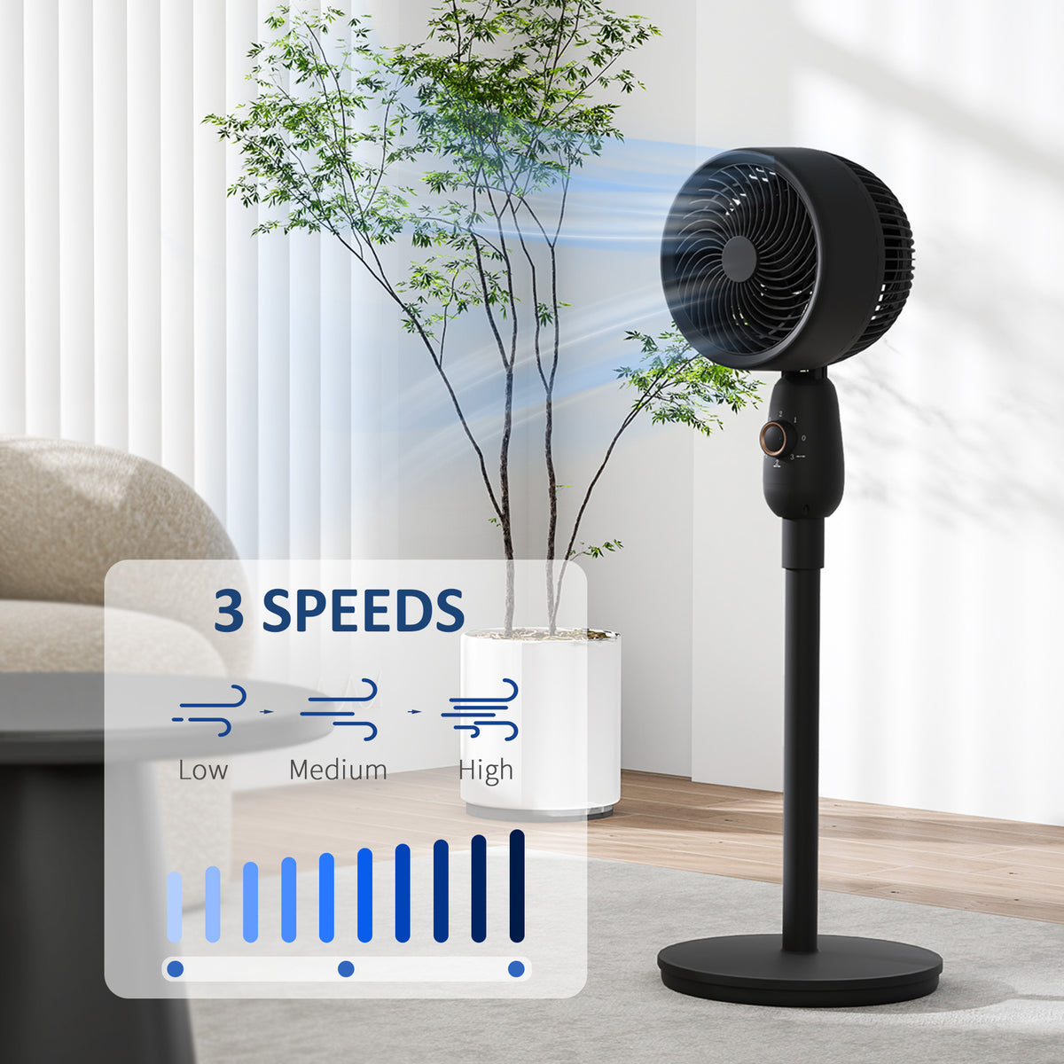 HOMCOM Pedestal Fan, Powerful Air Circulator, 12 Inch Floor Standing Fan with 3 Speed Settings, Oscillating Function for Bedroom, Home and Office, Black - Black
