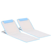 Outsunny Set of 2 Foldable Garden Beach Chair Mat, Lightweight Outdoor Sun Lounger Seats with Adjustable Back, Metal Frame, PE Fabric Head Pillow and Carry Bag, Cream White - Cream