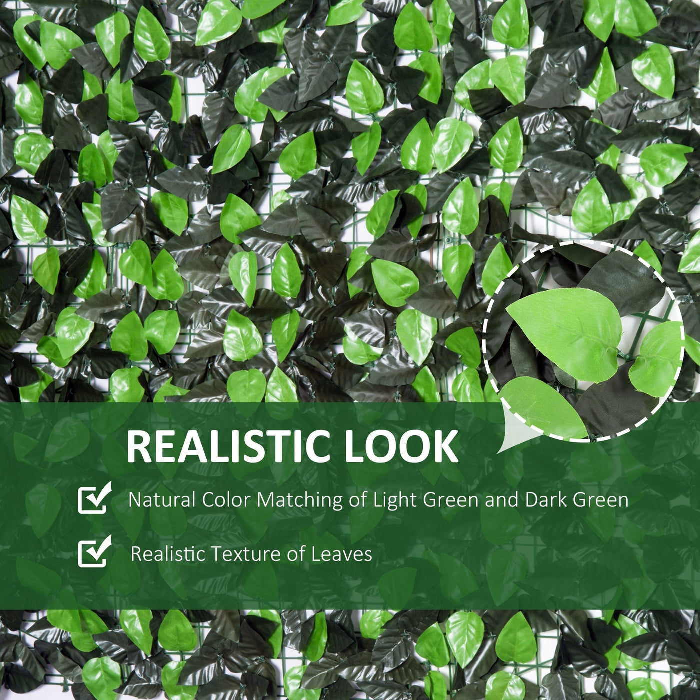 Outsunny Artificial Leaf Hedge Screen Privacy Fence Panel for Garden Outdoor Indoor Decor 3M x 1M Light Green and Dark Green - Green