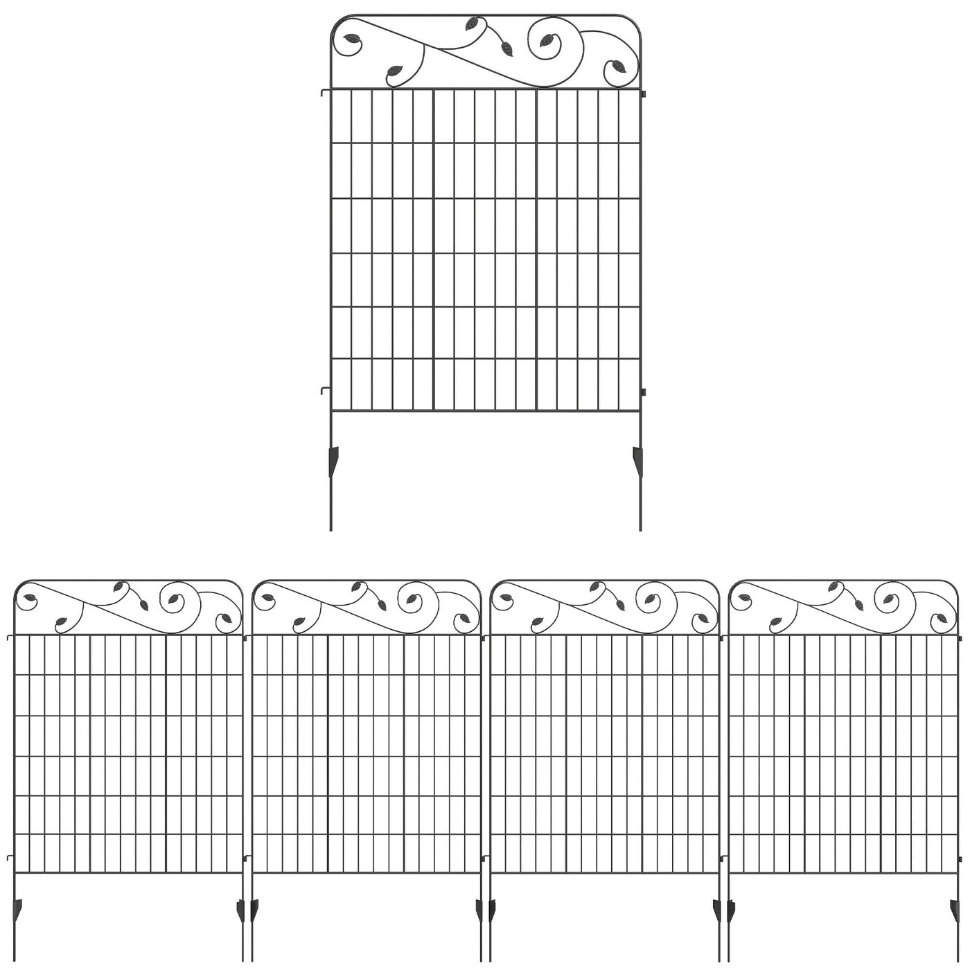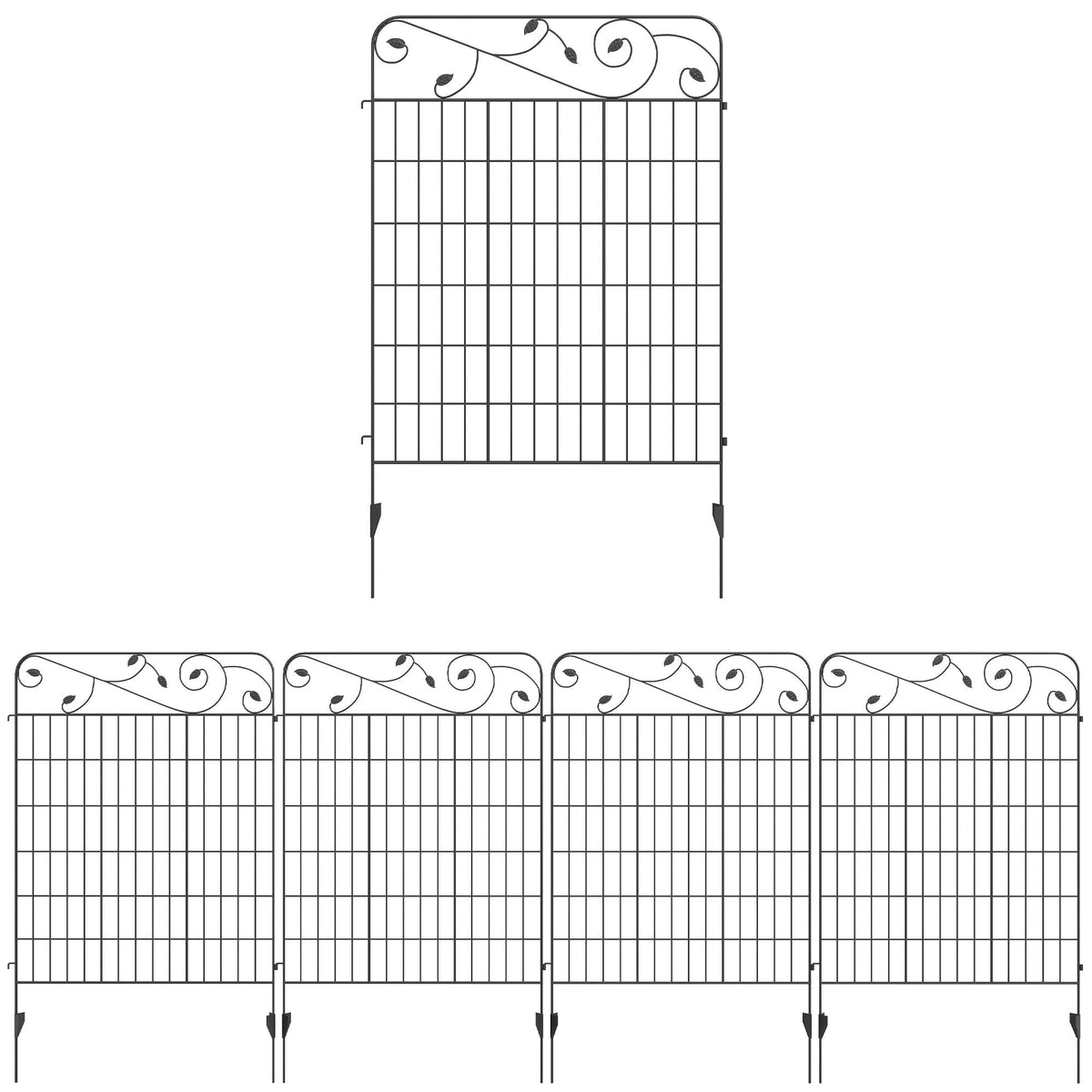 Outsunny Decorative Garden Fencing, 4PCs Outdoor Picket Fence Panels, 43in x 11.5ft Rustproof Metal Wire Landscape Flower Bed Border Edging Animal Barrier, Black - Black