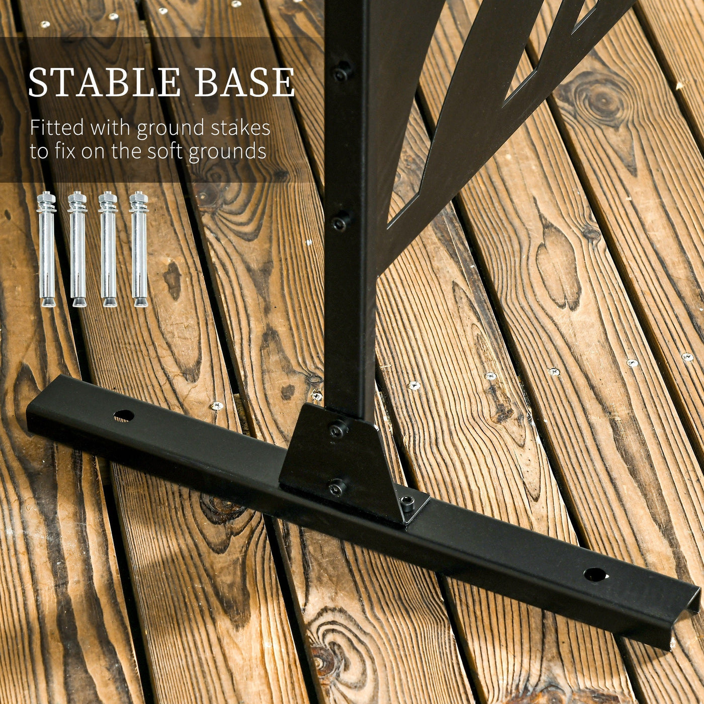 Outsunny Decorative Garden Privacy Screen with Stand, 6.5FT Freestanding Metal Outdoor Divider, Decorative Privacy Panel with Expansion Screws for Garden Pool Hot Tub, Large Leaves Style, Black - Black