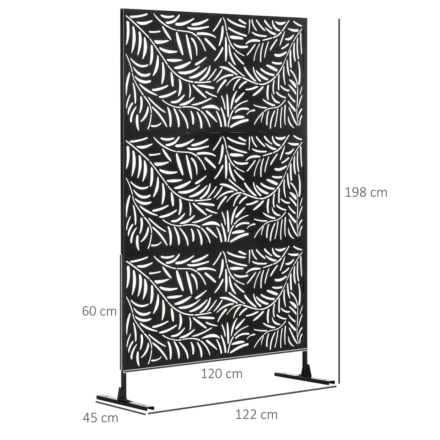 Outsunny Decorative Privacy Screen with Stand, 6.5FT Freestanding Metal Outdoor Divider, Decorative Privacy Panel with Expansion Screws for Garden Patio Pool Hot Tub, Willow Branch Style, Black - Black