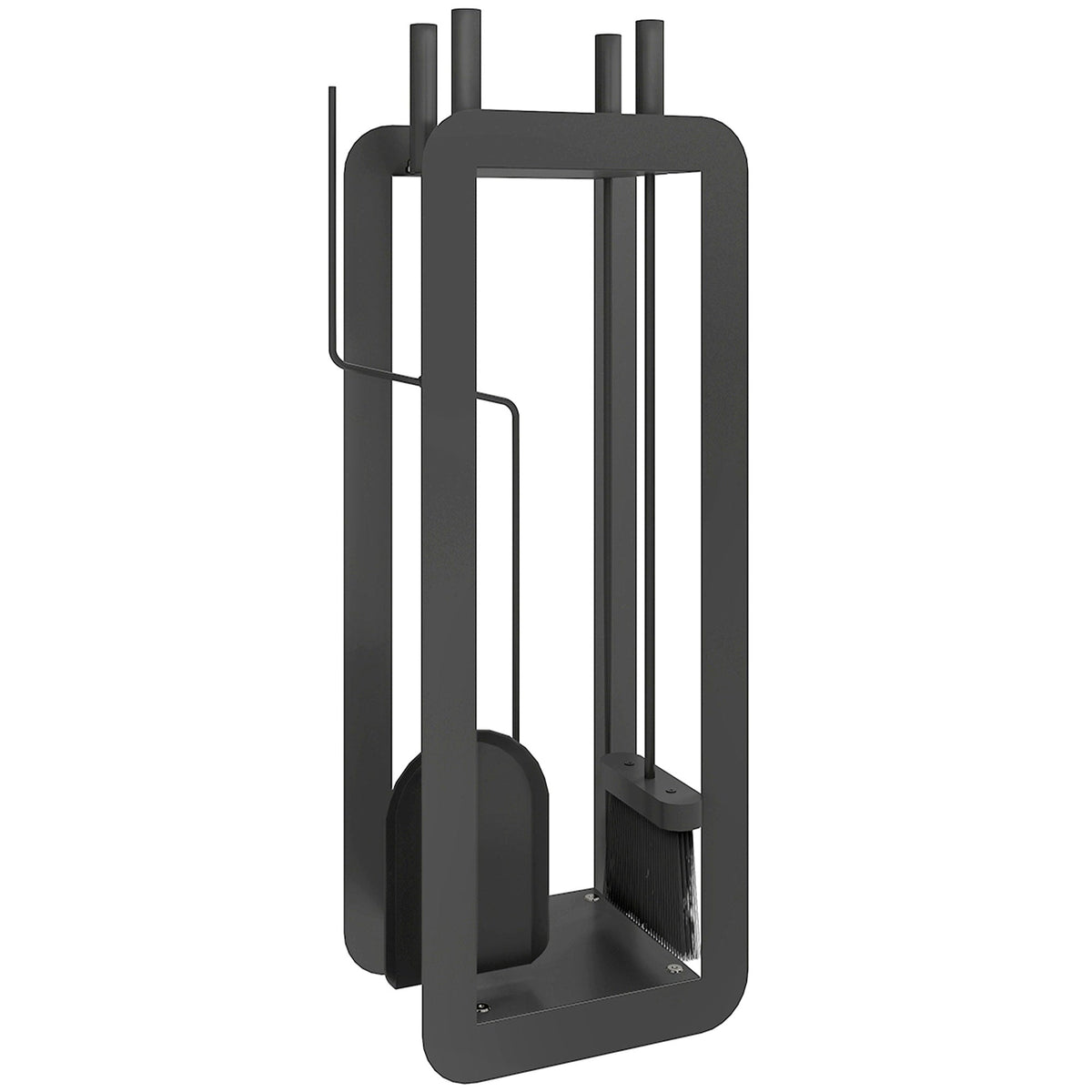 Outsunny 5 Pieces Fireplace Companion Set, Metal Fireplace Accessories Fireside Companion Set with Brush, Shovel, Poker, A Pair of Tongs, Stand, Black - Black