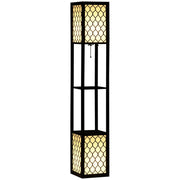 HOMCOM Floor Lamp with Shelves, Dual Light, Modern Tall Standing Lamps for Living Room, Bedroom, with Chain Switch, Bulb not Included, Black - Black