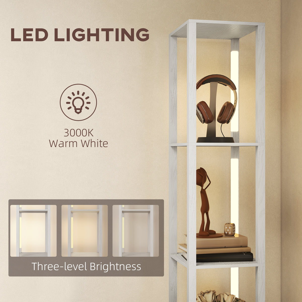HOMCOM Floor Lamp with Shelves, LED Column Modern Standing Lamp with Fabric Drawer, Adjustable Brightness, Foot Switch for Living Room, Bedroom, Office, White - White