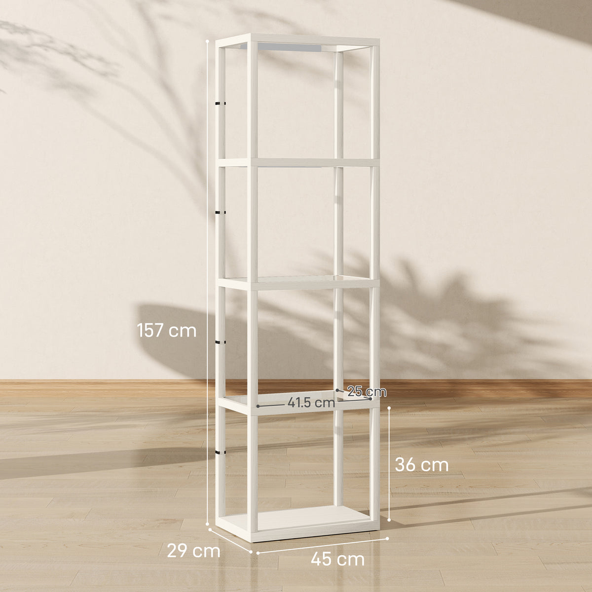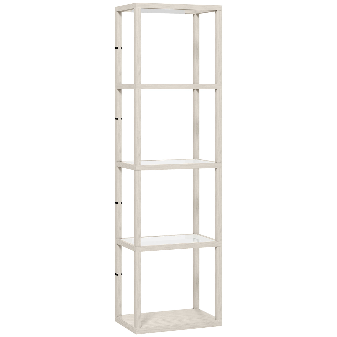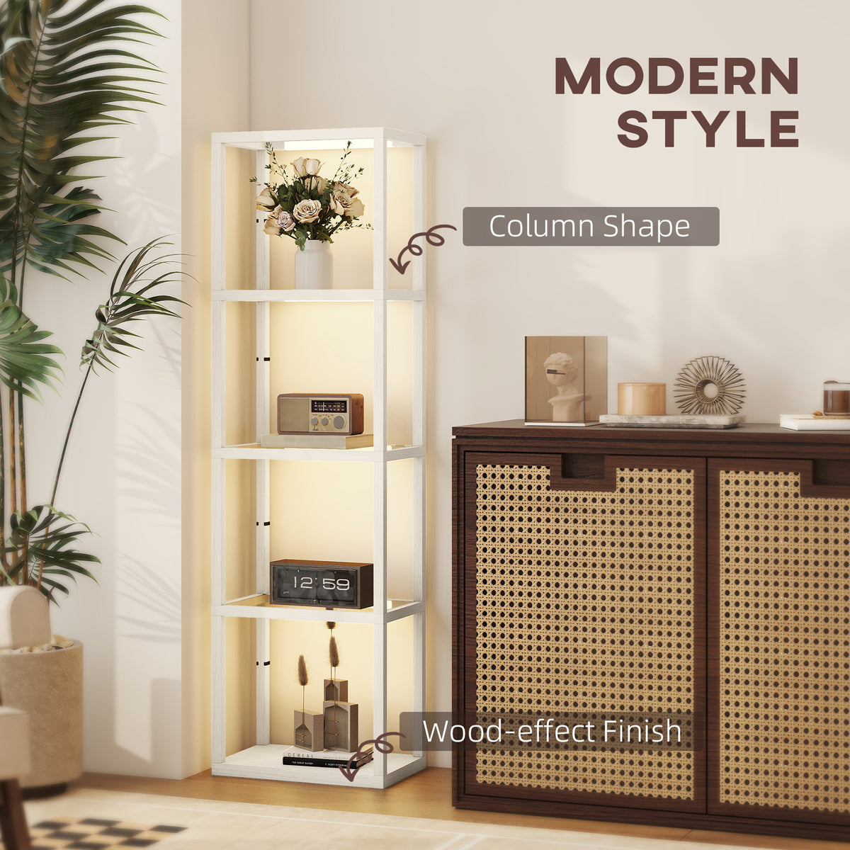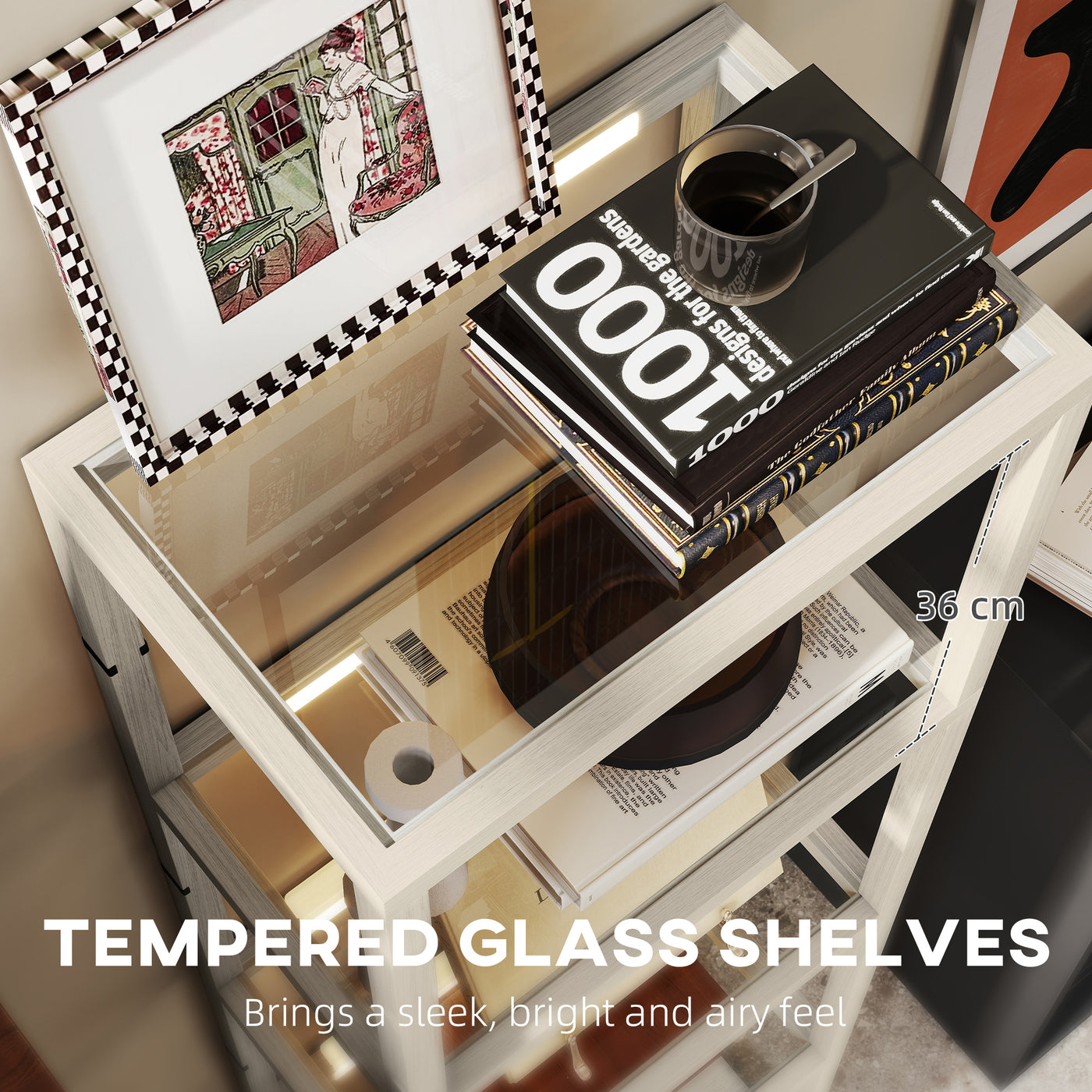 HOMCOM LED Floor Lamp with Glass Shelves, 4 Layers Dimmable Tall Standing Lamp, Modern Column Shelf Floor Light for Living Room, Bedroom, Office, Oak - Oak