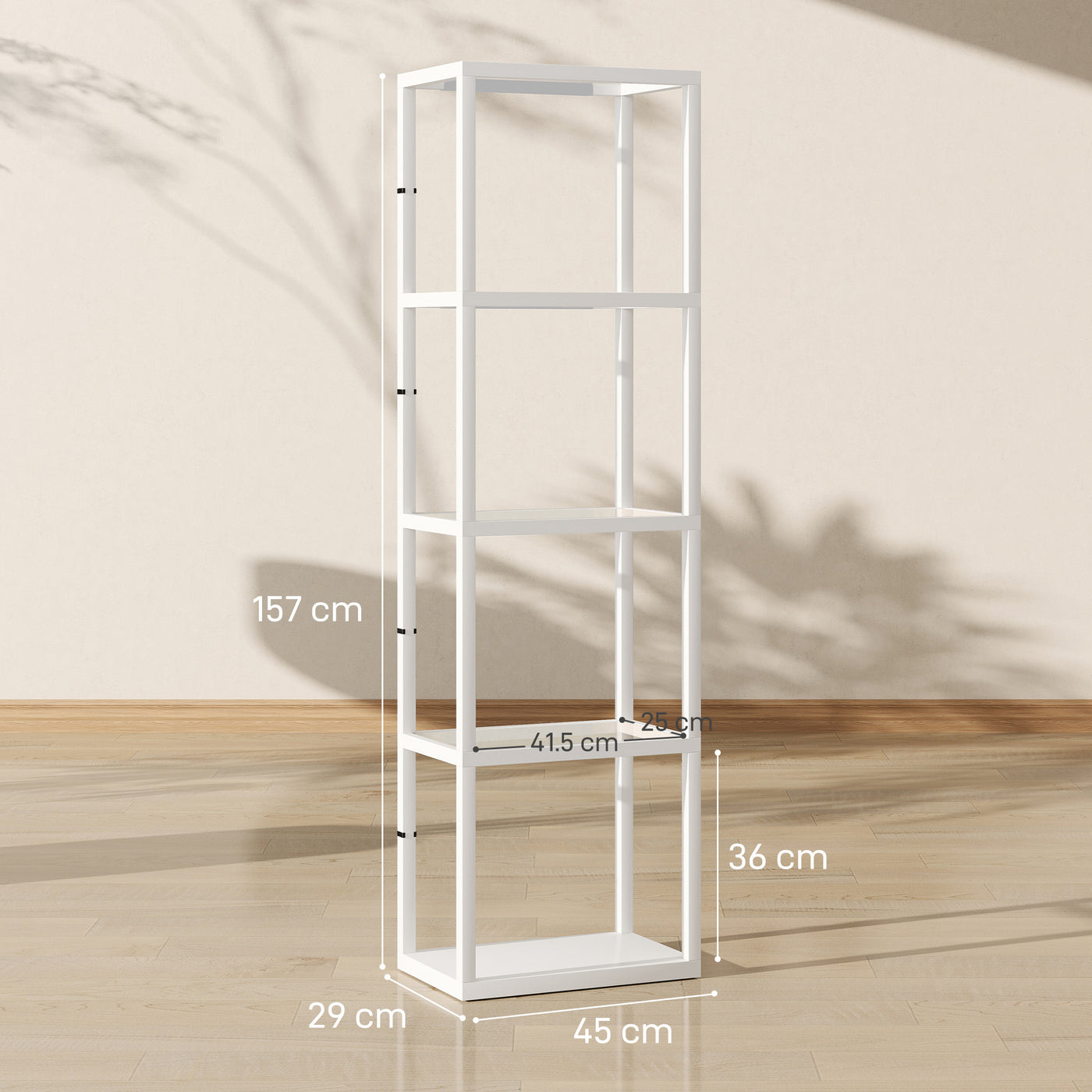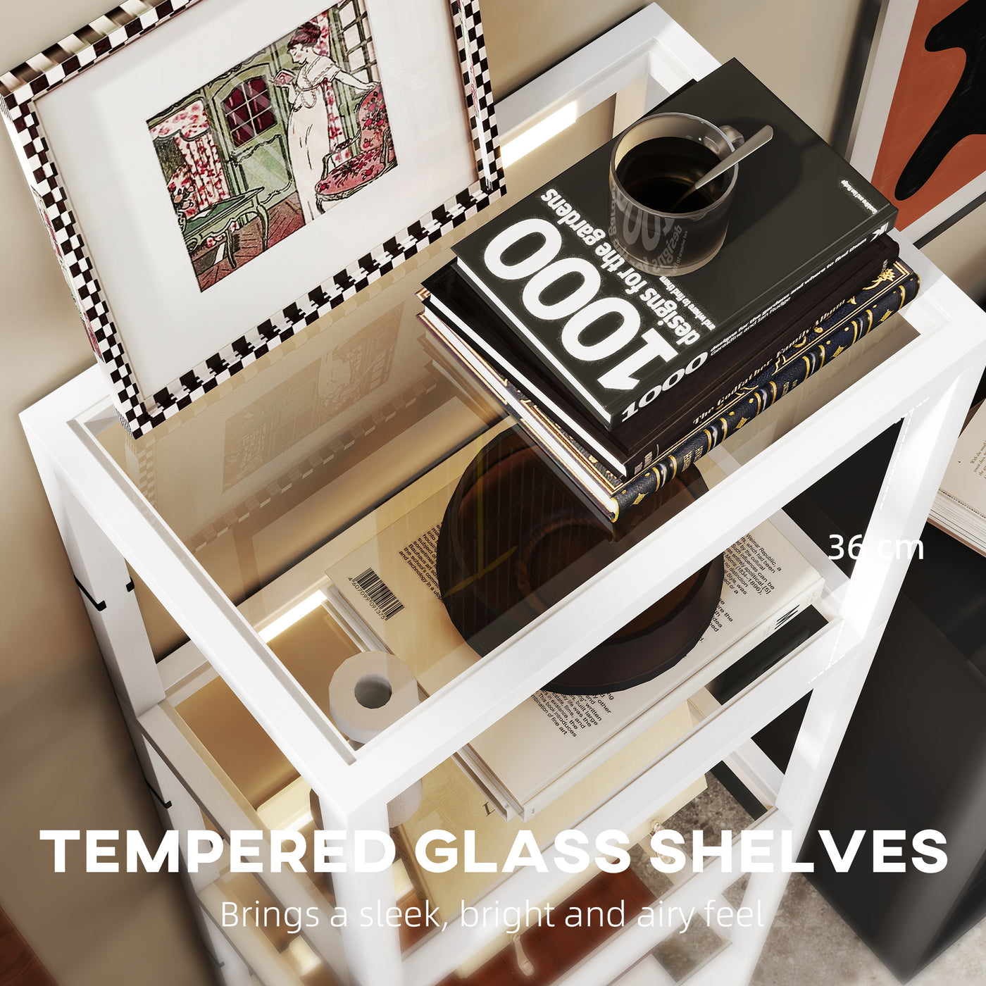 HOMCOM LED Floor Lamp with Glass Shelves, 4 Layers Dimmable Tall Standing Lamp, Modern Column Shelf Floor Light for Living Room, Bedroom, Office, White - White