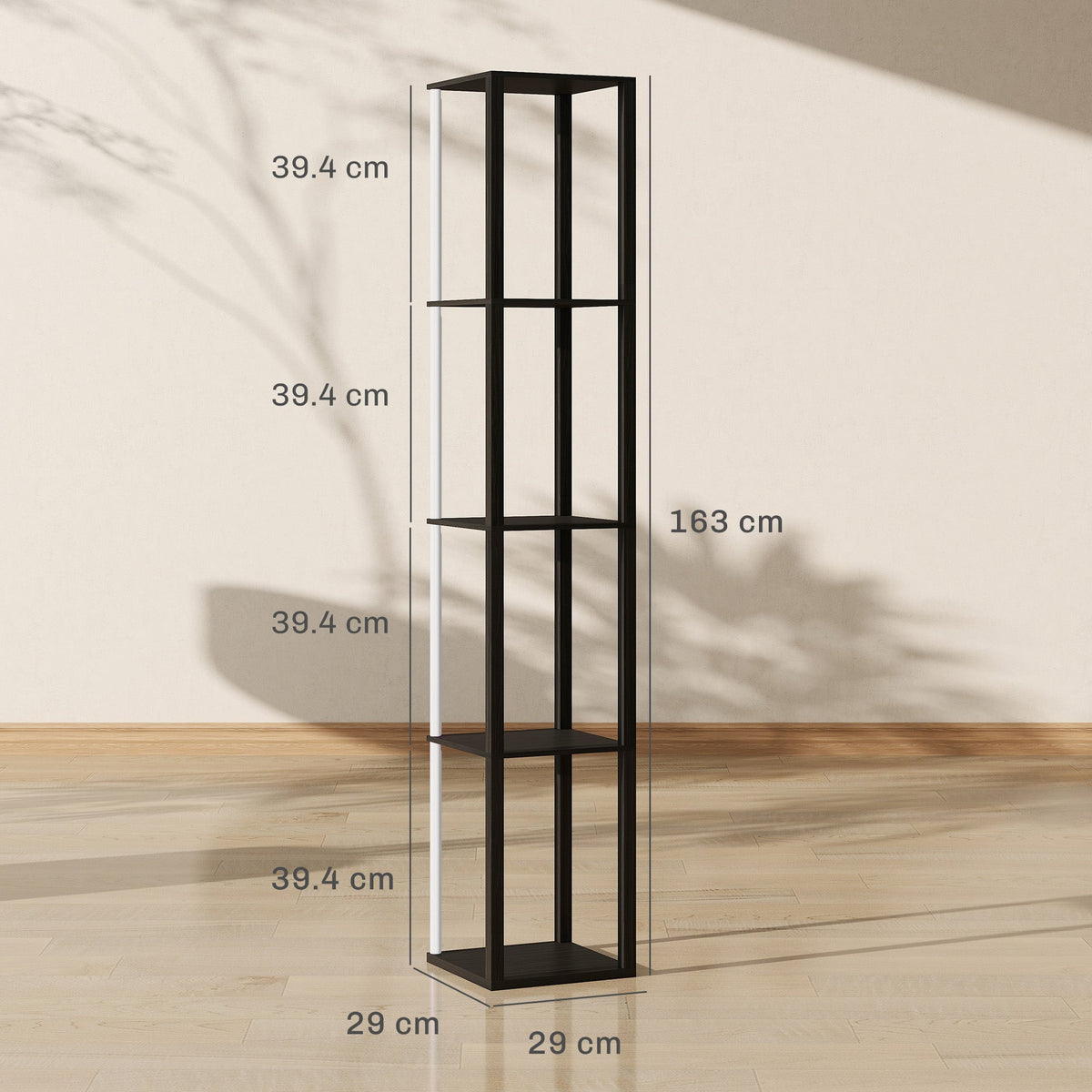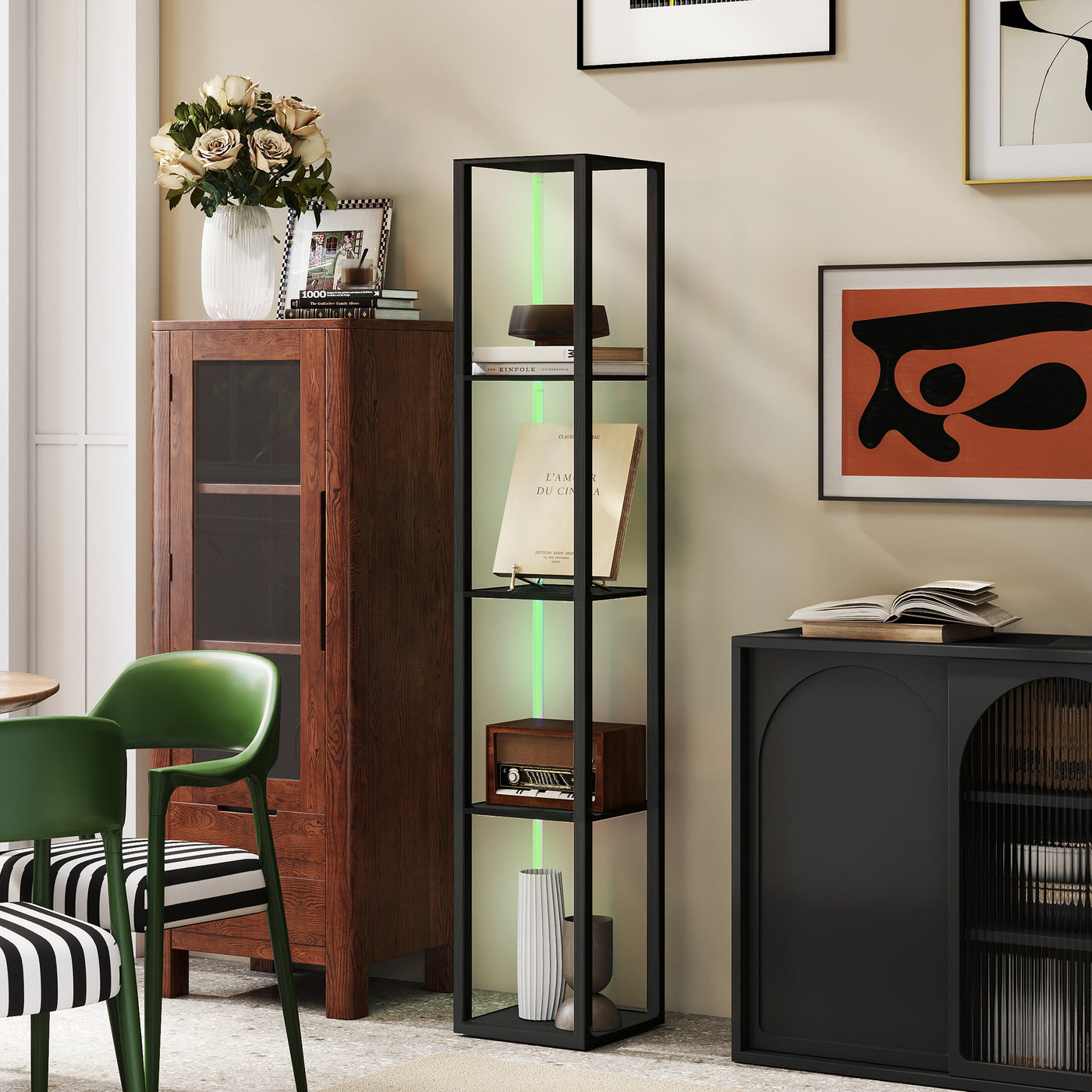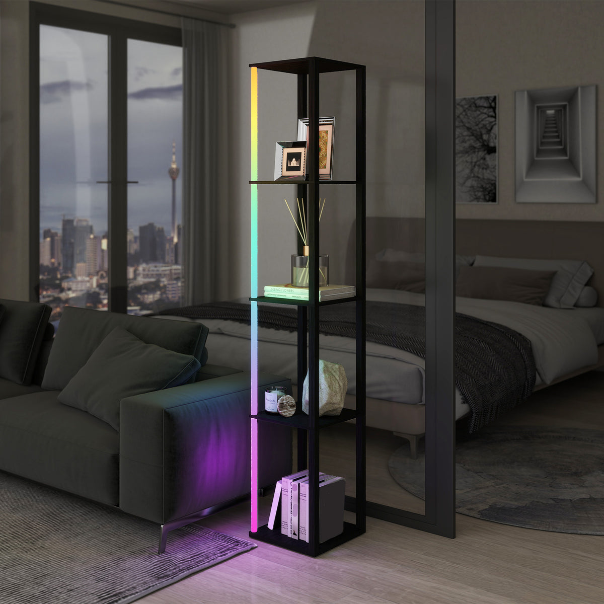 HOMCOM RGB LED Floor Lamp with Shelves, Modern Dimmable Standing Lamp with Remote Control, Adjustable Brightness & Speed for Living Room, Bedroom, Office, Black - Black