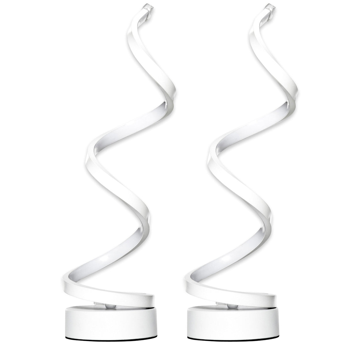 HOMCOM Set of 2 Modern Wave-Shaped LED Table Lamp with Round Metal Base for Living Room, Bedroom, White - White