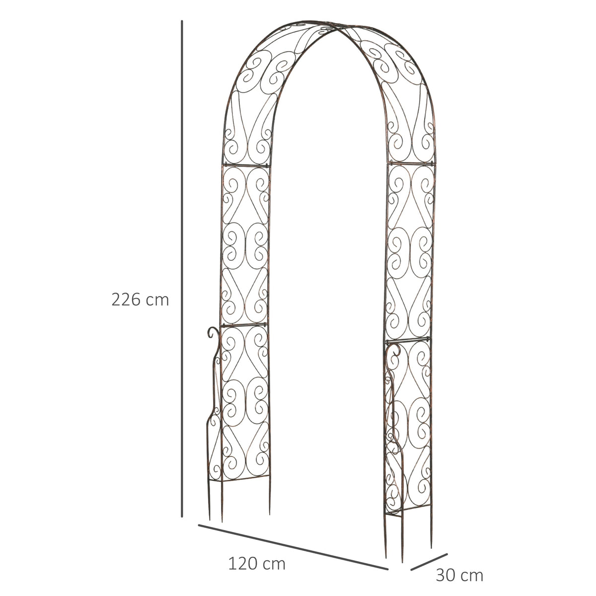 Outsunny Metal Garden Arch Trellis, Decorative Arbour Archway for Walkway Path Ceremony Wedding Party, 120 x 30 x 226cm - Black