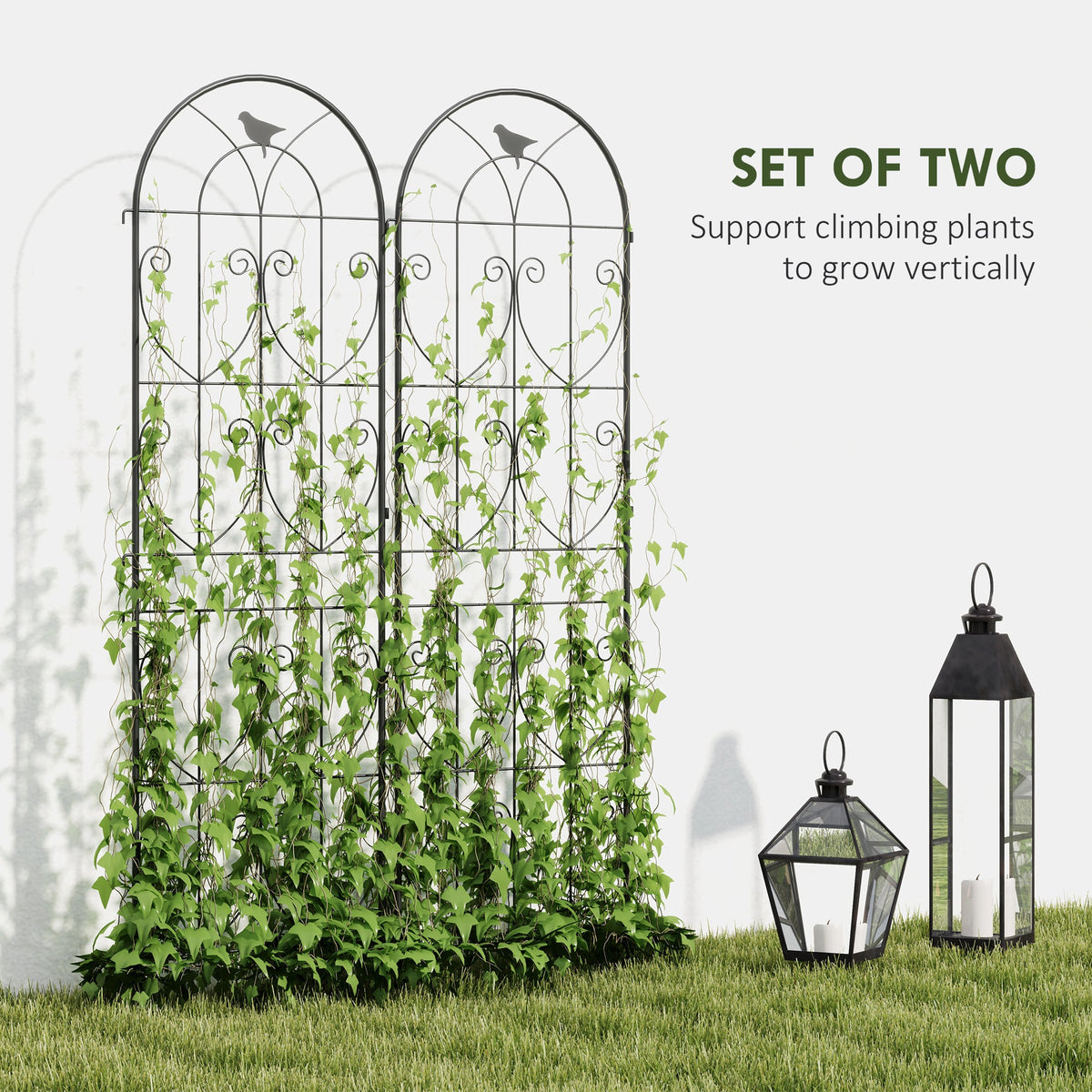 Outsunny Set of 2 Garden Trellis, Metal Fence Panels for Climbing Outdoor Plants, Flowers, 180 x 50cm - Black