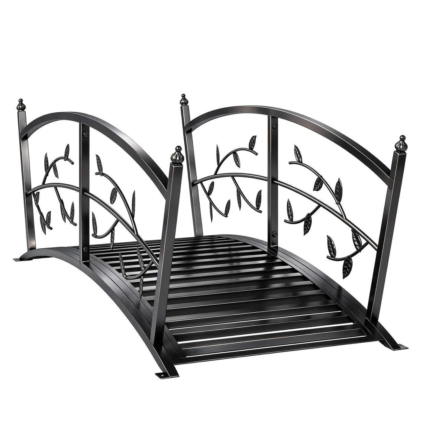 Outsunny 1.2M Metal Garden Bridge with Safety Railings, Outdoor Pond Bridge, Arch Decorative Footbridge for Creek Stream - Black