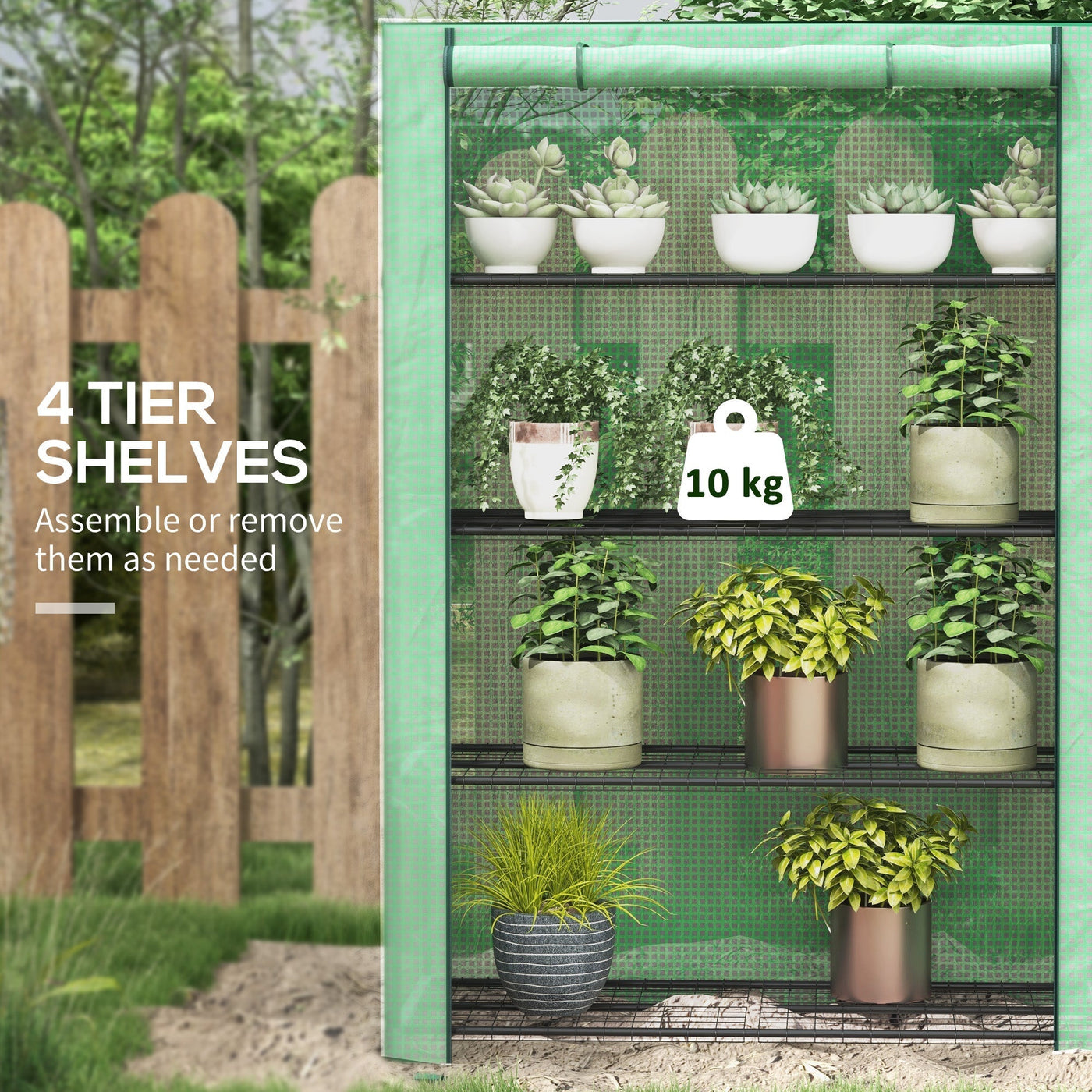 Outsunny 4 Tier Mini Greenhouse with Reinforced PE Cover, Portable Indoor Outdoor Green House with Roll-up Door and Wire Shelves, 170H x 120W x 50Dcm, Green - Green