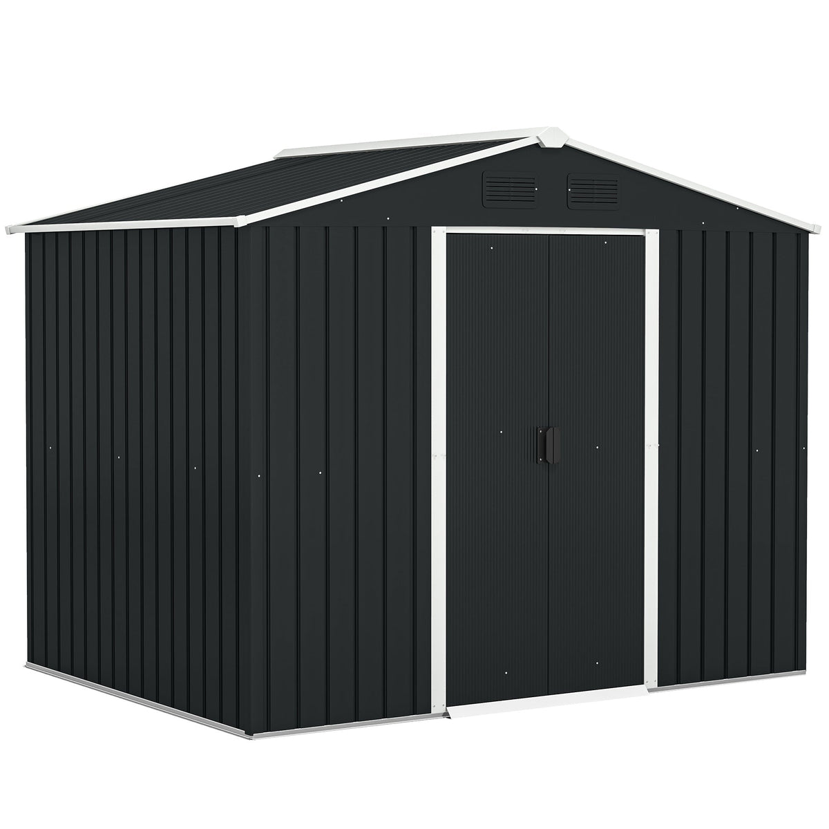Outsunny 7.7 x 5.7ft Metal Garden Shed, Galvanised Outdoor Tool Storage House with Ventilation Slots and Sliding Doors, Grey - Grey