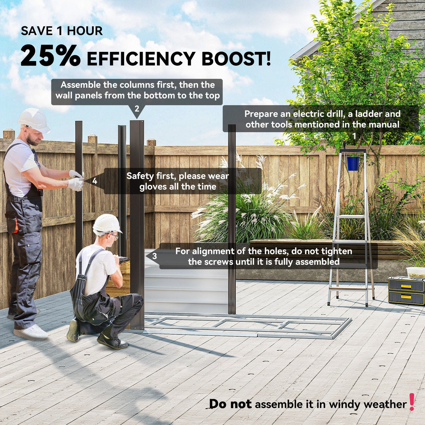 Outsunny 7 x 4ft Garden Shed, Easy to Assemble, Upgraded Galvanised Steel Frame with Foundation Kit, Double Doors with Lock, Outdoor Metal Shed with Vents and Gloves, Garden Storage Shed, Natural - Oak