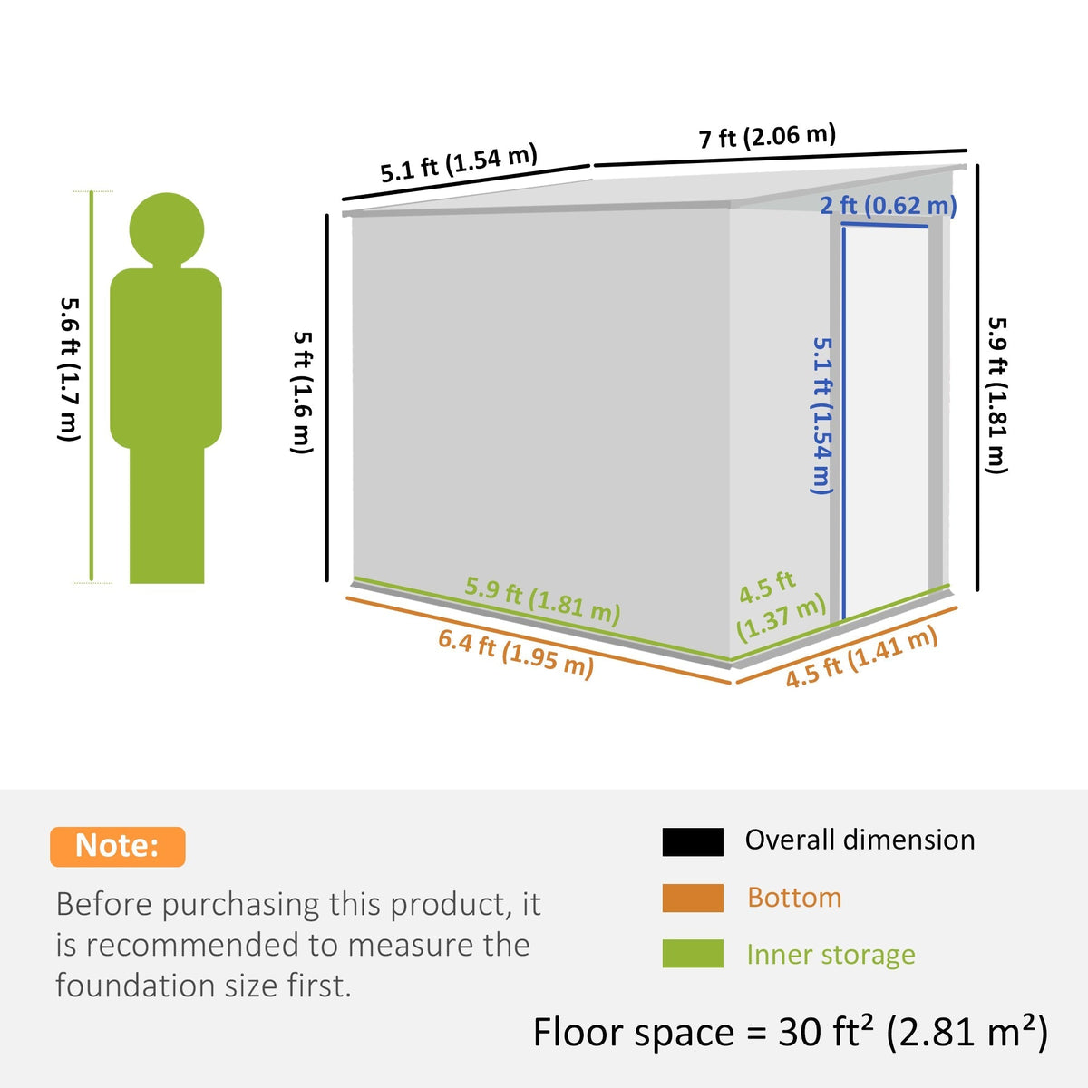 Outsunny 7 x 5ft Galvanised Metal Shed, with Sliding Door - Green