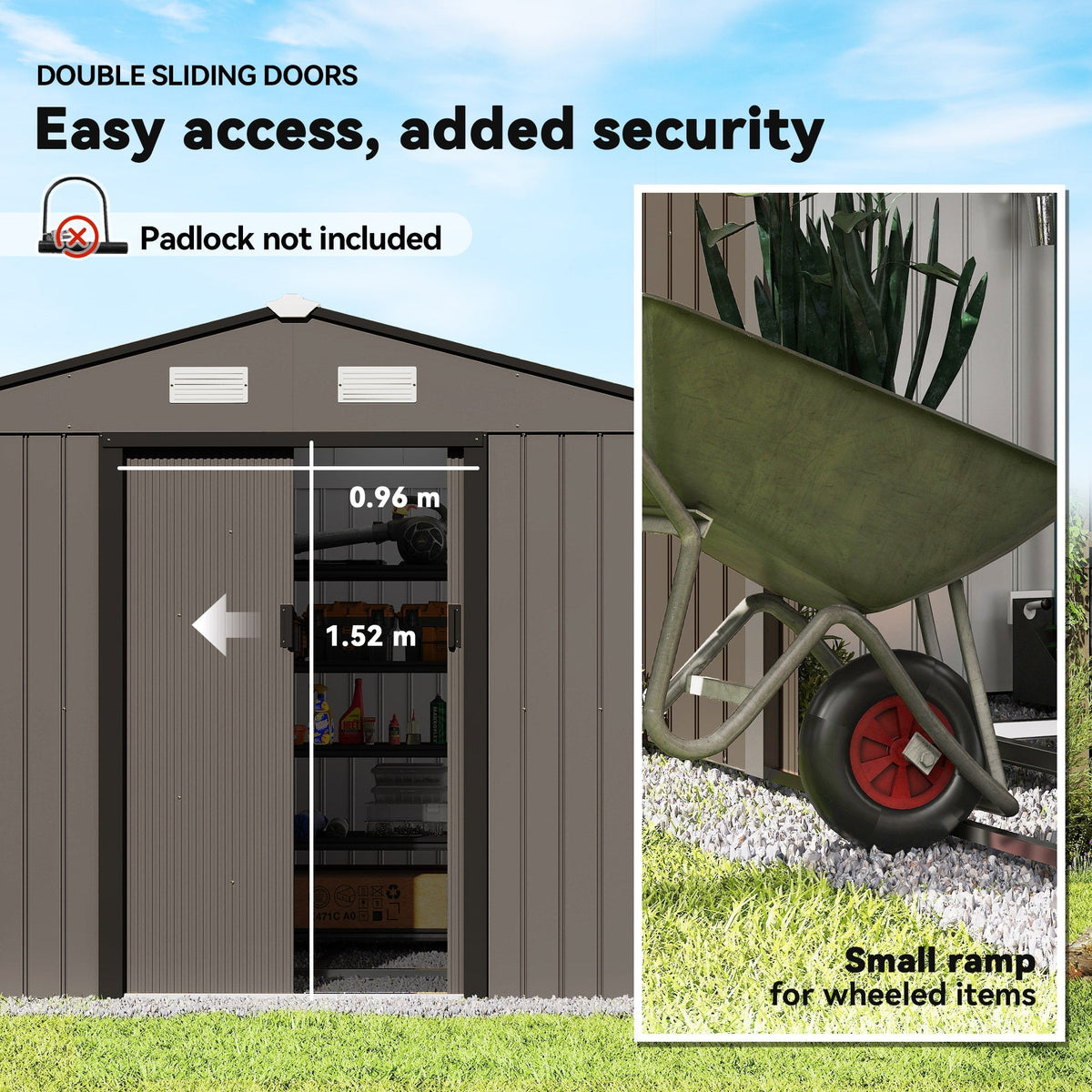 Outsunny 9 x 6ft Metal Garden Shed, Outdoor Storage Tool House with Ventilation Slots, Foundation Kit and Lockable Double Doors, Brown - Brown
