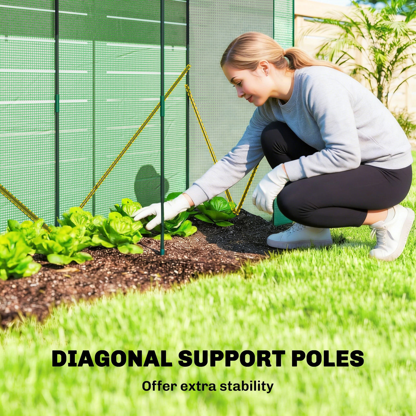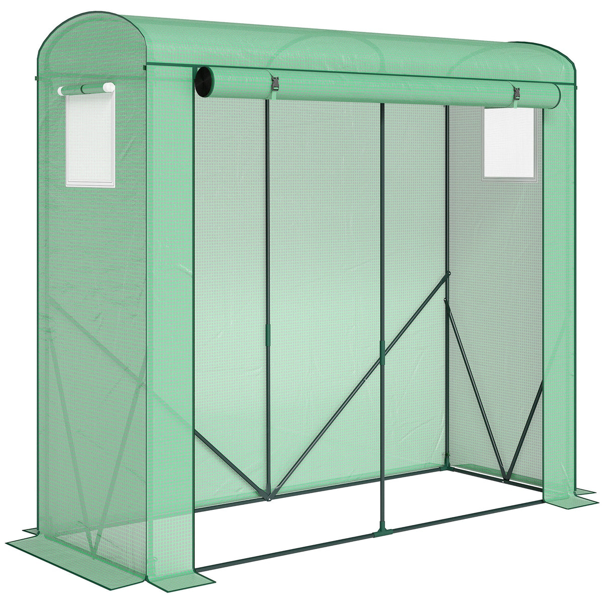 Outsunny Mini Greenhouse, Garden Tomato Growhouse with Roll-Up Door and 2 Mesh Windows, PE Cover, 200 x 75 x 188 cm, Green - Green