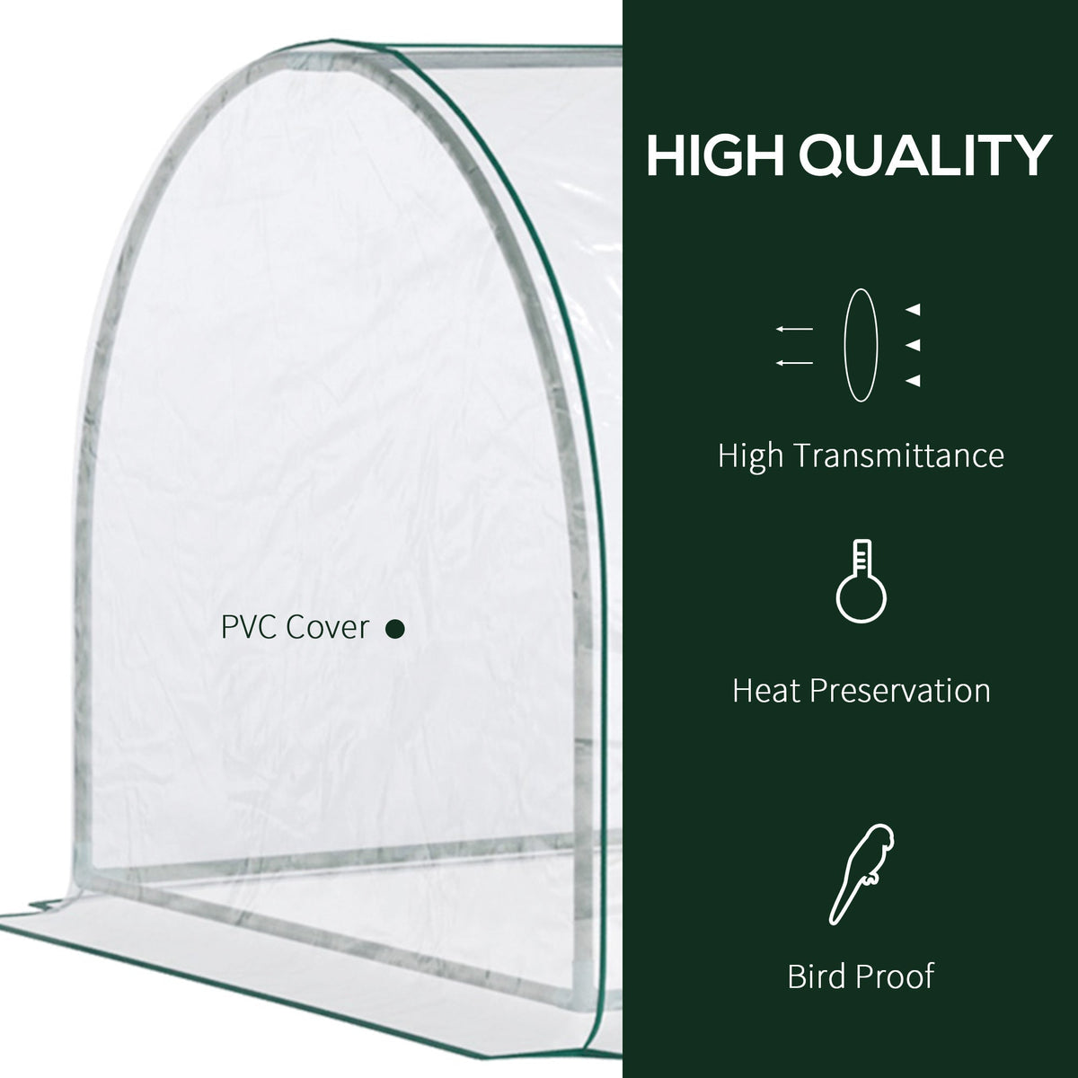Outsunny Mini Greenhouse, Small Polytunnel Green House with Zipped Doors, Steel Frame for Garden Patio, 250 x 100 x 80cm, Clear - Transparent, Dark Green